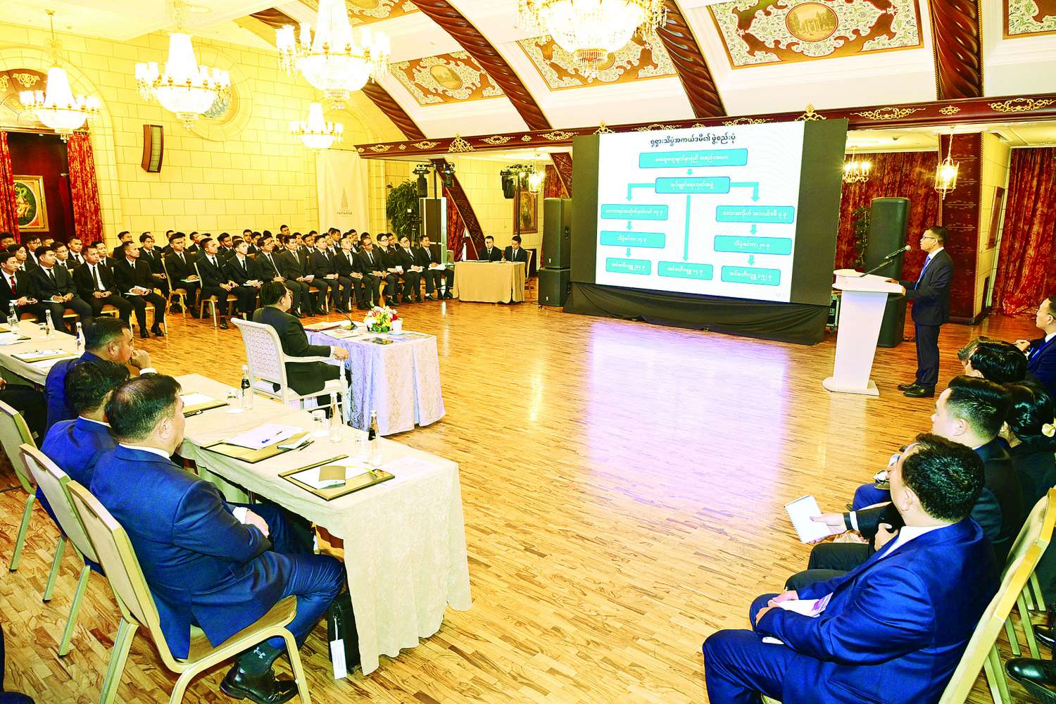ယနေ့ မိမိတို့ ကြိုးစားအကောင်အထည်ဖော်ဆောင်ရွက်နေသည့်လုပ်ငန်းသည် ရှိရင်းစွဲအလုပ်ကို ဆောင်ရွက်နေခြင်းမဟုတ်ဘဲ နိုင်ငံအတွက် အရွေ့တစ်ခု၊ မှတ်တိုင်တစ်ခုကို ရေးထိုးနိုင်သည်အထိ လုပ်ငန်းများအပေါ်ရည်မှန်းချက်ထားရှိပြီး အကောင်အထည်ဖော်ဆောင်ရွက်သွားရန် အရေးကြီးကြောင်း၊ အချိန်ကိုအကျိုးရှိစွာ အသုံးချတတ်ခြင်းနှင့် စိတ်အား ထက်သန်မှုရှိခြင်းတို့သည် ရည်မှန်းချက်များ အောင်မြင်ရေးအတွက် အဓိကသော့ချက်တစ်ခုဖြစ်သည်ကို အစဉ်နှလုံးသွင်းခံယူထားပြီး ကြိုးစားကြရန်လည်းမှာကြားလိုကြောင်း။