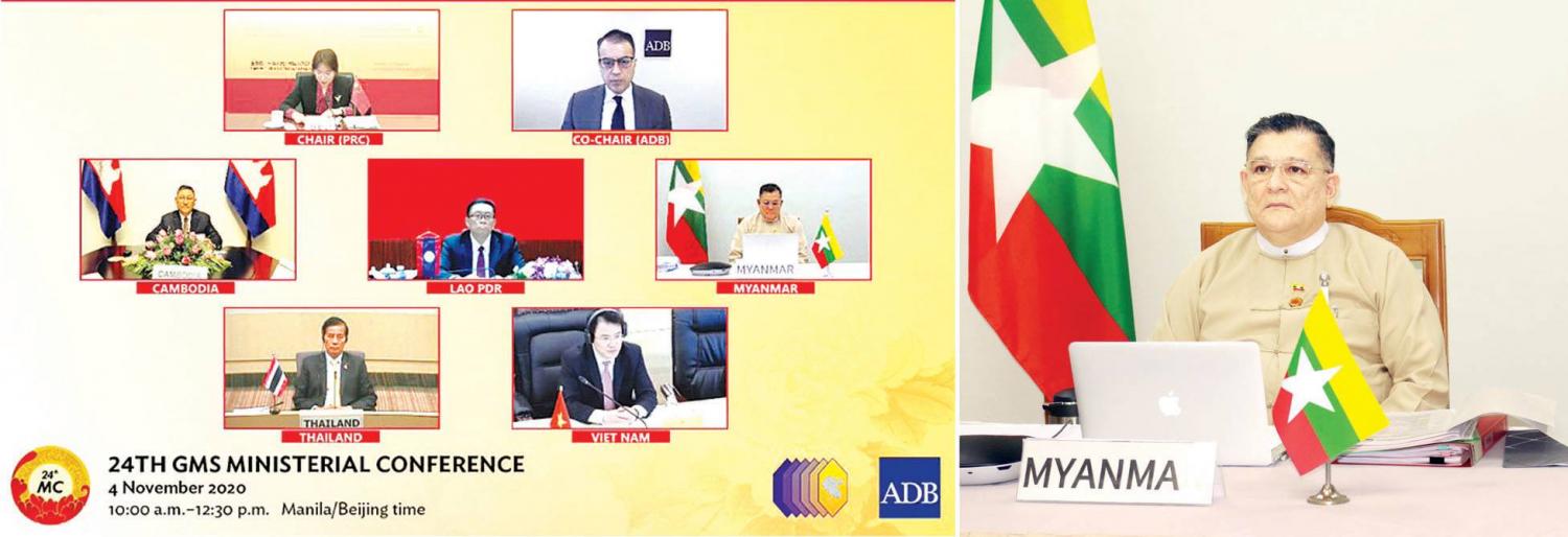 ရင်းနှီးမြှုပ်နှံမှုနှင့် နိုင်ငံခြားစီးပွားဆက်သွယ်ရေးဝန်ကြီးဌာန ဒုတိယဝန်ကြီး ဦးဗရတ်ဆင်း သည် ယနေ့နံနက်ပိုင်း တွင် “Pave the way to a more integrated, inclusive, sustainable and prosperous GMS” ခေါင်းစဉ်ဖြင့် ကျင်းပသော (၂၄) ကြိမ်မြောက် မဟာမဲခေါင်ဒေသခွဲ ဝန်ကြီးများအဆင့်အစည်းအဝေး (24th Greater Mekong Subregion (GMS) Ministerial Conference- MC 24) သို့ ဗီဒီယိုကွန်ဖရင့်ဖြင့် တက်ရောက်သည်။