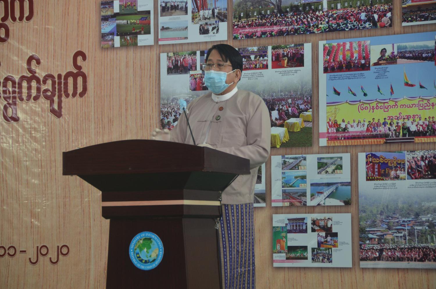 နိုင်ငံတော်အစိုးရ၏ ပြည်သူ့အတွက် ပြုပြင်ပြောင်းလဲတိုးတက်ရေး ဆောင်ရွက်ချက် ဓာတ်ပုံ မှတ်တမ်း (၂၀၁၆-၂၀၂၀) စာအုပ်မိတ်ဆက်ပွဲ အခမ်းအနားကို ယနေ့ မွန်းလွဲ ၁ နာရီတွင် နေပြည်တော်ရှိ ပြန်ကြားရေးဝန်ကြီးဌာန စုပေါင်းခန်းမ၌ ကျင်းပသည်။