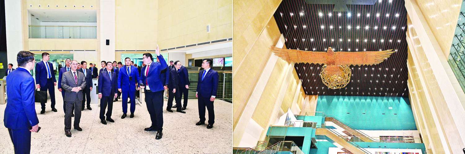 ယင်းနောက် နိုင်ငံတော်ယာယီသမ္မတ နိုင်ငံတော်လုံခြုံရေးနှင့် အေးချမ်းသာယာရေးကော်မရှင်ဥက္ကဋ္ဌနှင့် အဖွဲ့ဝင်များအား အမျိုးသားပြန်လည်သင့်မြတ်ရေးနှင့် ငြိမ်းချမ်းရေးနန်းတော်မှ General Director Mr. Yakupov Daniyar Abaevich နှင့် တာ၀န်ရှိသူများက ဧည့်ခန်းမဆောင်တွင် တွေ့ဆုံ၍ ကာဇက်စတန်နိုင်ငံ၏ သမိုင်းကြောင်းဆိုင်ရာနှင့် အမျိုးသားပြန်လည်သင့်မြတ်ရေးနှင့် ငြိမ်းချမ်းရေးနန်းတော်ဆိုင်ရာများ၊ ကာဇက်စတန်နိုင်ငံတွင် လူမျိုးပေါင်း ၃၀၀ ကျော်ရှိပြီး လူမျိုးစု များအကြားငြိမ်းချမ်းစွာ အတူယှဉ်တွဲနေထိုင်ရန်လိုအပ်သည့်အတွက် အမျိုးသားပြန်လည်သင့်မြတ်ရေးနှင့် ငြိမ်းချမ်းရေးနန်းတော်ကို တည်ဆောက်ခဲ့မှုနှင့် အမျိုးသားရေးညီလာခံကို နှစ်စဉ်လက်ခံကျင်းပဆောင်ရွက်လျက်ရှိမှု၊ လူမျိုးစုများအချင်းချင်း ချစ်ကြည်မှုနှင့် နားလည်မှုရှိအောင်ဆောင်ရွက်သွားရန်လိုအပ်မှု၊ ကာဇက်စတန်နိုင်ငံ ရှိဘာသာရေးဆိုင်ရာ ခေါင်းဆောင်များအစည်းအဝေးကိုလည်း လက်ခံကျင်းပခဲ့မှုနှင့် နန်းတော်အတွင်း ငြိမ်းချမ်းရေးနှင့် ဘာသာရေးဆိုင်ရာအခမ်းအနားများ ကျင်းပပြုလုပ်ခဲ့မှုတို့နှင့်ပတ်သက်၍ ရှင်းလင်းတင်ပြသည်။
