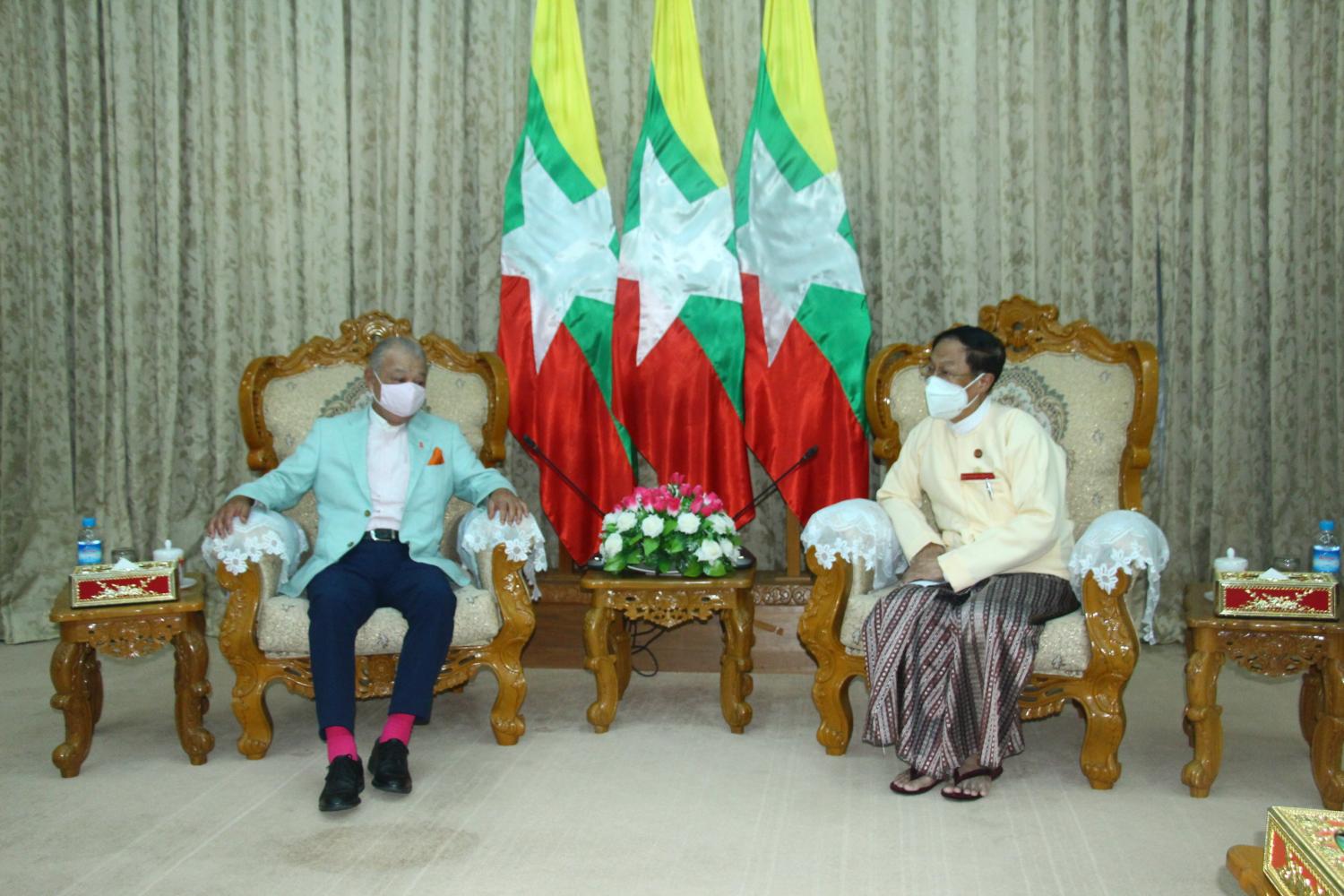 ပြည်ထောင်စုရွေးကောက်ပွဲကော်မရှင်ဥက္ကဋ္ဌ ဦးလှသိန်းသည် မြန်မာနိုင်ငံအမျိုးသား ပြန်လည်သင့်မြတ်ရေး ဆိုင်ရာ ဂျပန်အစိုးရ၏ အထူးကိုယ်စားလှယ်၊ ဂျပန်နိုင်ငံ နိပွန် ဖောင်ဒေးရှင်းဥက္ကဋ္ဌ မစ္စတာ ရိုဟေး ဆာဆာကာဝါနှင့်အဖွဲ့အား ယနေ့မွန်းလွဲ ၂ နာရီတွင် နေပြည်တော်ရှိ ပြည်ထောင်စု ရွေးကောက်ပွဲ ကော်မရှင်ရုံး၊ ဧည့်တွေ့ခန်းမဆောင်၌ လက်ခံ တွေ့ဆုံသည်။
