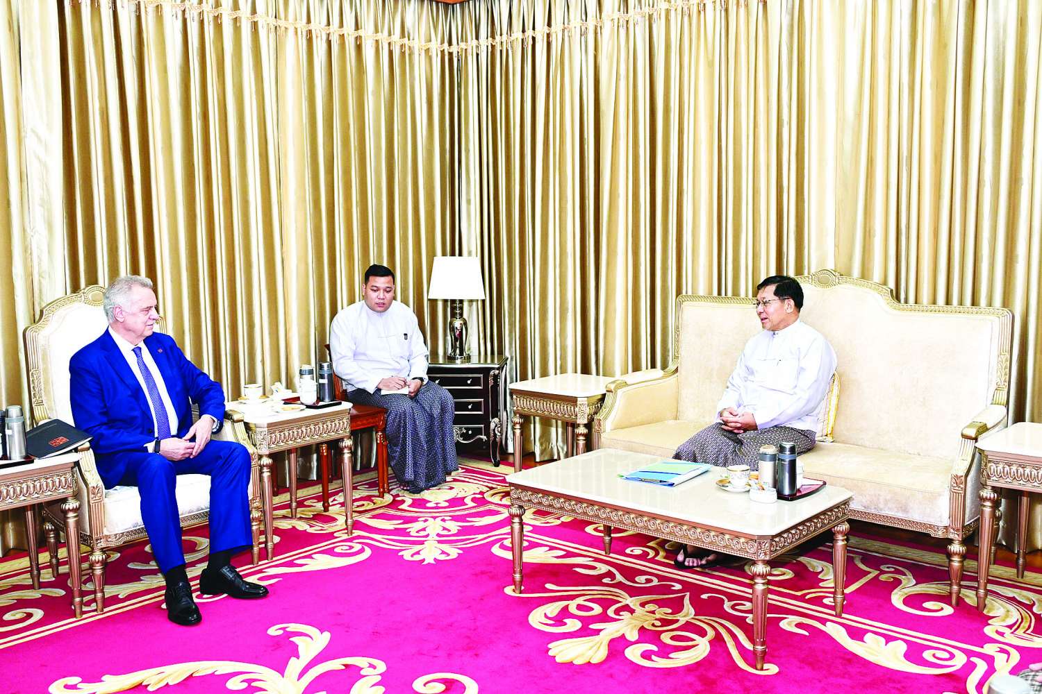 ပြည်ထောင်စုသမ္မတမြန်မာနိုင်ငံတော်ယာယီသမ္မတ နိုင်ငံတော်လုံခြုံရေးနှင့်အေးချမ်းသာယာရေးကော်မရှင်ဥက္ကဋ္ဌ ဗိုလ်ချုပ်မှူးကြီးမင်းအောင်လှိုင်ထံသို့ ရုရှားဖက်ဒရေးရှင်းနိုင်ငံ၊ စိန့်ပီတာစဘတ်မြို့အစိုးရအဖွဲ့ဝင်၊ ပြည်ပဆက်ဆံရေးကော်မတီဥက္ကဋ္ဌ Mr. Evgeny Grigoryev ဦးဆောင်သောကိုယ်စားလှယ်အဖွဲ့က ယနေ့မွန်းလွဲပိုင်းတွင် နေပြည်တော်ရှိ တပ်မတော်ဧည့်ဂေဟာ၌ လာရောက်ဂါရဝပြုတွေ့ဆုံသည်။