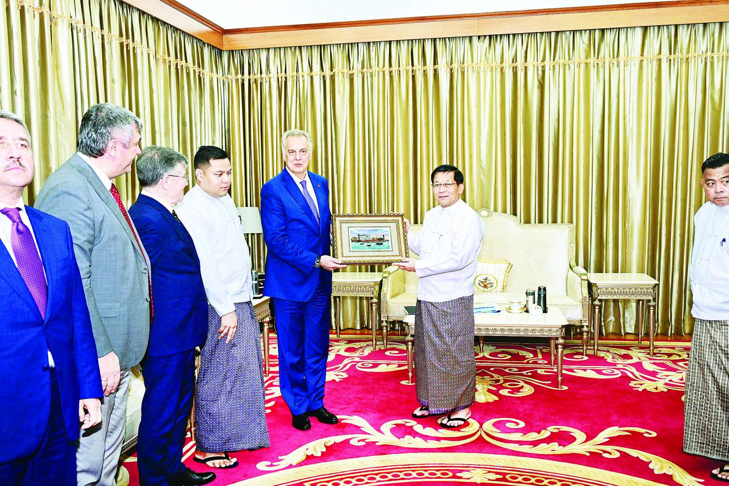 တွေ့ဆုံပွဲအပြီးတွင် နိုင်ငံတော်ယာယီသမ္မတ နိုင်ငံတော်လုံခြုံရေးနှင့်အေးချမ်းသာယာရေး ကော်မရှင်ဥက္ကဋ္ဌနှင့် ရုရှားဖက်ဒရေးရှင်းနိုင်ငံ၊ စိန့်ပီတာစဘတ်မြို့ အစိုးရအဖွဲ့ဝင်၊ ပြည်ပဆက်ဆံရေးကော်မတီဥက္ကဋ္ဌတို့သည် အမှတ်တရလက်ဆောင်ပစ္စည်းများ အပြန်အလှန်ပေးအပ်ခဲ့ကြောင်း သတင်းရရှိသည်။