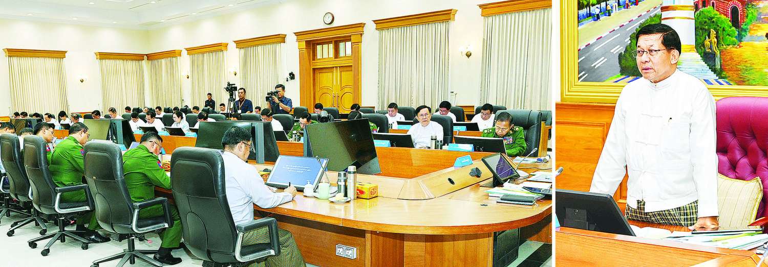 ထို့နောက် ပြည်ထောင်စုဝန်ကြီးများနှင့် တိုင်းဒေသကြီးနှင့်ပြည်နယ်ဝန်ကြီးချုပ်များက ပြည်နယ်နှင့် တိုင်းဒေသများအလိုက် စပါးစိုက်ပျိုးဧကများနှင့် အထွက်နှုန်းမှန်ကန်မှုရှိစေရေးနှင့် ပန်းတိုင်ရည်မှန်းချက်ပြည့်မီရေး ဆောင်ရွက်လျက်ရှိသည့်အခြေအနေများ၊ နိုင်ငံတော်မှ သွင်းအားစုများအပါအဝင် အခြားထောက်ပံ့ပေးလျက်ရှိသည့်အခြေအနေများ၊ ကုန်စည်စီးဆင်းမှု မှန်ကန်မြန်ဆန်ရေးနှင့် ကုန်ဈေးနှုန်းတည်ငြိမ်ရေးဆောင်ရွက်လျက်ရှိသည့် အခြေအနေများ၊ လွတ်လပ်၍တရားမျှတသည့် ပါတီစုံဒီမိုကရေစီအထွေထွေရွေးကောက်ပွဲ အောင်မြင်စေရေးအတွက် မဲစာရင်းများမှန်ကန်မှုရှိစေရေးနှင့် မဲရုံများလျာထားဆောင်ရွက်ထားရှိမှုအခြေအနေများ၊ ခေတ္တပိတ်ထားခဲ့ရသည့် အခြေခံကျောင်းများနှင့်တက္ကသိုလ်များပြန်လည်ဖွင့်လှစ်၍ ပညာသင်ကြားနေမှုအခြေအနေ၊ မူဝါဒများနှင့်အညီ စီမံကိန်းများရာခိုင်နှုန်းအလိုက် အကောင်အထည်ဖော်ဆောင်ရွက်ပြီးစီးမှုအခြေအနေ၊ ငလျင်ကြောင့်ထိခိုက်ပျက်စီးခဲ့မှုများကို ဖယ်ရှားရှင်းလင်းပြီး ပြန်လည်ထူထောင်ရေးလုပ်ငန်းများ ဆောင်ရွက်လျက်ရှိသည့်အခြေအနေများနှင့်ပတ်သက်၍ ရှင်းလင်းတင်ပြသည်။