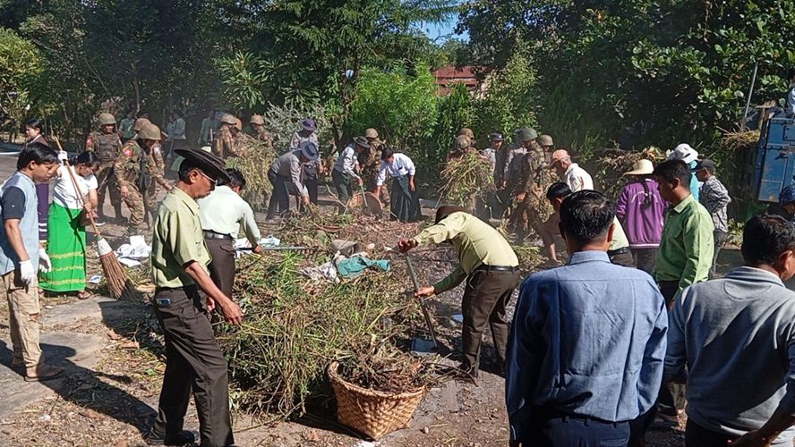 ထို့အပြင် ယနေ့တွင် အမှတ်(၂) အခြေခံပညာအထက်တန်းကျောင်းနှင့် အခြေခံပညာအထက်တန်းကျောင်းခွဲ(ဘော်ကြို)ကျောင်းများ၌ တပ်မတော်သားများ၊ မြန်မာနိုင်ငံရဲတပ်ဖွဲ့ဝင်များ၊ မီးသတ်တပ်ဖွဲ့ဝင်များ၊ ဌာနဆိုင်ရာဝန်ထမ်းများ၊ ဒေသခံပြည်သူများ ပူးပေါင်း၍ ကျောင်းဝန်းအတွင်း/အပြင်နှင့် စာသင်ဆောင်များ၌ စုပေါင်းသန့်ရှင်းရေး လုပ်ငန်းများ ဆောင်ရွက်ပေးကြသည်။