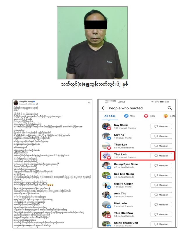 ဖမ်းဆီးရမိသူများအားစိစစ်ဖော်ထုတ်ချက်အရ ၎င်းတို့သည် ဖွဲ့စည်းပုံအခြေခံဥပဒေ(၂၀၀၈ ခုနှစ်)နှင့်အညီ တပ်မတော်မှနိုင်ငံတော်တာဝန်ထမ်းဆောင်နေသည့်အပေါ်ထောက်ခံမှုမရှိခဲ့သည့်အပြင် မကြာမီကျင်းပရန်ရှိသော ပါတီစုံဒီမိုကရေစီအထွေထွေရွေးကောက်ပွဲ အောင်မြင်စေရေးအတွက်လည်း ၎င်းတို့တတ်ကျွမ်းသည့်အနုပညာကဏ္ဍမှ ပူးပေါင်းပါဝင်ခြင်းမရှိခဲ့ကြောင်း၊ ၎င်းအပြင် ရွေးကောက်ပွဲအောင်မြင်စေရေးအတွက် တစ်တပ်တစ်အားပါဝင်ဆောင်ရွက်နေသည့်အနုပညာရှင်များအား ပြည်ပရောက်အကြမ်းဖက်အဖွဲ့အစည်းထောက်ခံသူများနှင့်တရားခံပြေးများမှ လူမှုကွန်ရက်စာမျက်နှာမှတစ်ဆင့် ဝေဖန်ရေးသားသည့်အပေါ်ထောက်ခံအားပေးခဲ့ကြကြောင်း စိစစ်တွေ့ရှိရသည်။