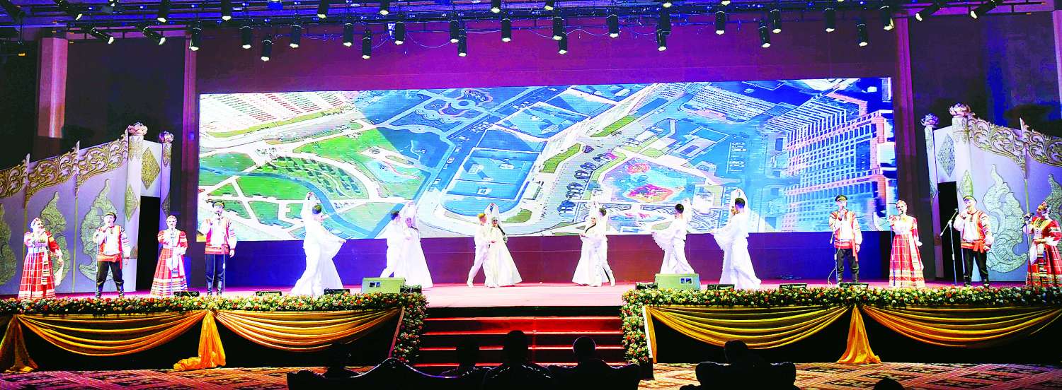 ဦးစွာ “မဟာရုရှားနှင့် ဆိုက်ဘေးရီးယား” အမည်ရသည့် ဂုဏ်ပြုဖျော်ဖြေပွဲအခမ်းအနားကို နှစ်နိုင်ငံ နိုင်ငံတော်သီချင်းများ ဖွင့်လှစ်ကာ အလေးပြု၍ ဖွင့်လှစ်သည်။