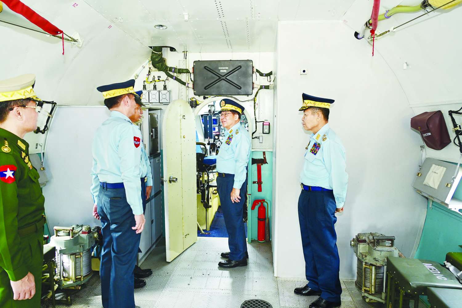 ဆက်လက်၍ နိုင်ငံတော်လုံခြုံရေးနှင့်အေးချမ်းသာယာရေးကော်မရှင်ဥက္ကဋ္ဌ တပ်မတော်ကာကွယ်ရေးဦးစီးချုပ်နှင့် အဖွဲ့ဝင်များသည် တပ်တော်ဝင် လေယာဉ်၊ ရဟတ်ယာဉ်များအား အမွှေးနံ့သာရည်များ ပက်ဖျန်းပေးကြသည်။ ထို့နောက် တပ်တော်ဝင် လေယာဉ်၊ ရဟတ်ယာဉ်များအား လှည့်လည်ကြည့်ရှုကြပြီး အမှတ်တရ စုပေါင်းဓာတ်ပုံရိုက်ကြသည်။