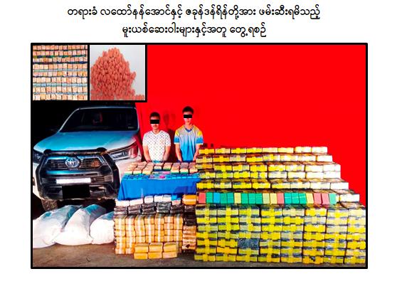 ဖြစ်စဉ်မှာ လုံခြုံရေးတပ်ဖွဲ့ဝင်များပါဝင်သော ပူးပေါင်းအဖွဲ့သည် အောက်တိုဘာလ ၃၀ ရက် မွန်းလွဲ ၂ နာရီ ၃၀ မိနစ်ခန့်တွင် ဝိုင်းမော်မြို့နယ်၊ နတ်မြစ်ခတံတားအနီး၌ သတင်းအရစောင့်ဆိုင်းစဉ် လထော်နန်အောင်(ဘ) ဦးလထော်ပေါလု မောင်းနှင်ပြီး ဇခုန်ဒန်ရိန်(ဘ) ဦးဇခုန်ထွန်းဒန် လိုက်ပါလာသော TOYOTA HILUX REVO မော်တော်ယာဉ်အား ရပ်တန့်စစ်ဆေးရှာဖွေရာ ယာဉ်ပေါ်မှ ဘိန်းဖြူ ၄၇ ဒသမ ၅၂ ကီလို (ခန့်မှန်းတန်ဖိုး ငွေကျပ် ၁ ဒသမ ၁၈၈ ဘီလီယံ)နှင့် စိတ်ကြွဆေးပြား ၇ ဒသမ ၈ သိန်း(ခန့်မှန်းတန်ဖိုးငွေကျပ် ၁ ဒသမ ၁၇ ဘီလီယံ) စုစုပေါင်း ခန့်မှန်းတန်ဖိုးငွေကျပ် ၂ ဒသမ ၃၅၈ ဘီလီယံတန်ဖိုးရှိ မူးယစ်ဆေးဝါးများကို ဖမ်းဆီးရမိခဲ့ကြောင်း သိရှိရသည်။