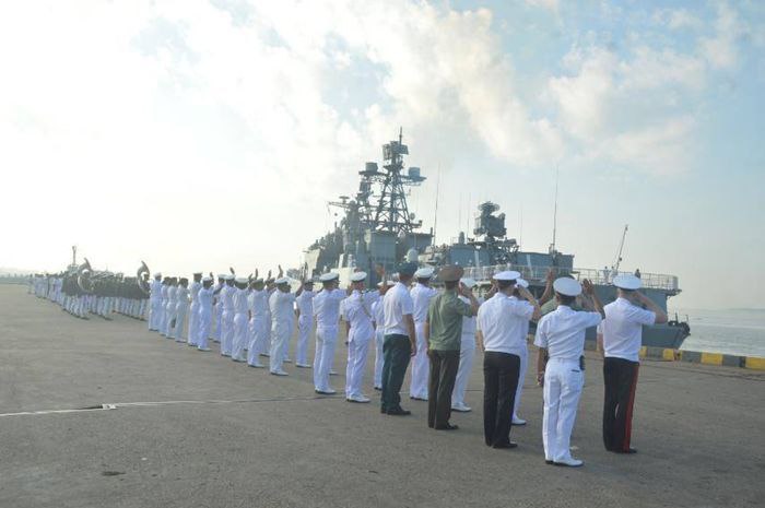 ပြည်ထောင်စုသမ္မတမြန်မာနိုင်ငံတော်သို့ တတိယအကြိမ် မြန်မာ-ရေကြောင်းလုံခြုံရေးဆိုင်ရာ လေ့ကျင့်ခန်းဆောင်ရွက်ရန်နှင့် ချစ်ကြည်ရေးခရီးလည်ပတ်ရန် နိုဝင်ဘာလ ၁၀ ရက်တွင် ရန်ကုန်မြို့သို့ ရောက်ရှိနေသော ရုရှားရေတပ် Pacific Fleet မှ စစ်ရေယာဉ် ၃ စီးတို့သည် ပင်လယ်ပြင်၌ လက်တွေ့လေ့ကျင့်ခန်းများ ဆောင်ရွက်ရန် တပ်မတော်(ရေ)မှ စစ်ရေယာဉ်များနှင့်အတူ နိုဝင်ဘာ ၁၃ ရက်၊ နံနက်ပိုင်းတွင် ရန်ကုန်မြို့၊ သီလဝါဆိပ်ကမ်းမှ လေ့ကျင့်ခန်းဧရိယာသို့ထွက်ခွာရာ တပ်မတော်(ရေ)မှ အရာရှိကြီးများ၊ အရာရှိ၊ စစ်သည်များ၊ ချစ်ကြည်ရေးခရီးရောက်ရှိနေသည့် ရုရှားရေတပ်မှ ဒုတိယရေတပ်ဦးစီးချုပ် ဒုတိယဗိုလ်ချုပ်ကြီး Aleksei Anatolievich Kilashko မြန်မာနိုင်ငံဆိုင်ရာ ရုရှားစစ်သံမှူးနှင့် တာဝန်ရှိသူများက ပို့ဆောင်နှုတ်ဆက်ကြသည်။