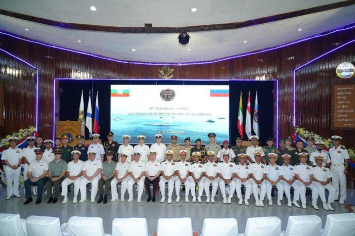 ထို့ပြင် တတိယအကြိမ် မြန်မာ-ရုရှား ရေကြောင်းလုံခြုံရေးဆိုင်ရာ လေ့ကျင့်ခန်းဖွင့်ပွဲအခမ်း အနားကို နိုဝင်ဘာ ၁၂ ရက် နံနက်ပိုင်းတွင် ရေတပ်လေ့ကျင့်ရေးဌာနချုပ်၊ သီရိမဟာဇေယျကျော်ထင်ခန်းမ၌ ကျင်းပပြုလုပ်ရာ တပ်မတော်(ရေ)မှ စစ်ဦးစီးအရာရှိချုပ်(ရေ)နှင့် အရာရှိ၊ စစ်သည်များ၊ ရုရှားရေတပ်မှ ဒုတိယရေတပ်ဦးစီးချုပ်နှင့် အရာရှိ၊ စစ်သည်များ၊ မြန်မာနိုင်ငံဆိုင်ရာ ရုရှားစစ်သံမှူး၊ လေ့လာသူများအဖြစ် ဖိတ်ကြားထားသည့် တရုတ်၊ အိန္ဒိယ၊ ကမ္ဘောဒီးယား၊ အင်ဒိုနီးရှား၊ လာအို၊ ဖိလစ်ပိုင်၊ ထိုင်း၊ ဗီယက်နမ်၊ ဘင်္ဂလားဒေ့ရှ်နှင့် ပါကစ္စတန်နိုင်ငံတို့မှ မြန်မာနိုင်ငံဆိုင်ရာစစ်သံမှူးများ တက်ရောက်ကြပြီးဖွင့်ပွဲအခမ်းအနားအပြီးတွင် အမှတ်တရစုပေါင်းဓာတ်ပုံရိုက်ကြသည်။