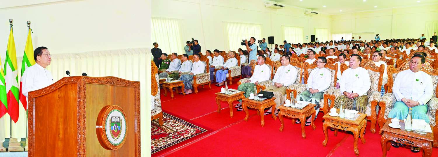 တင်ပြမှုများနှင့်ပတ်သက်၍ နိုင်ငံတော်ယာယီသမ္မတ နိုင်ငံတော်လုံခြုံရေးနှင့်အေးချမ်းသာယာရေးကော်မရှင်ဥက္ကဋ္ဌက မိမိတို့နိုင်ငံတွင် စိုက်ပျိုးရေးနှင့် မွေးမြူရေးတက္ကသိုလ်မှာ ယခင်ကတစ်ခုတည်းသာရှိခဲ့ကြောင်း၊ ထို့ကြောင့် စိုက်ပျိုးရေးနှင့် မွေးမြူရေးတက္ကသိုလ် (မအူပင်) ဖွင့်လှစ်နိုင်ရေး မိမိအနေဖြင့် ၂၀၂၁ ခုနှစ်မှစတင်၍ ကြိုးပမ်းဆောင်ရွက်ခဲ့သော်လည်း အကြောင်းအမျိုးမျိုးကြောင့် ဖွင့်လှစ်ရန် နှောင့်နှေးခဲ့ရကြောင်း၊ စိုက်ပျိုးရေးနှင့် မွေးမြူရေးတက္ကသိုလ် များသို့ တက်ရောက်လျက်ရှိသည့် ကျောင်းသား၊ ကျောင်းသူများအား ပညာသင်ထောက်ပံ့ကြေးများ ပေးအပ်နိုင်ရေး စီမံဆောင်ရွက်လျက်ရှိကြောင်း၊ မိမိတို့နိုင်ငံသည် စိုက်ပျိုးရေးနှင့် မွေးမြူရေးကို အခြေခံသည့်စီးပွားရေး အဓိကထားဆောင်ရွက်ခြင်းဖြစ်သဖြင့် မိရိုးဖလာစိုက်ပျိုးမွေးမြူရေးလုပ်ငန်းများကို ဆောင်ရွက်ခြင်းထက် နည်းစနစ်ကျနသည့် ခေတ်မီစိုက်ပျိုးမွေးမြူရေးလုပ်ငန်းများကို ဆောင်ရွက်နိုင်မည်ဆိုပါက များစွာအကျိုးဖြစ်ထွန်းစေမည်ဖြစ်ကြောင်း၊ ထို့ကြောင့် စိုက်ပျိုးမွေးမြူရေးပညာရှင်များကို မွေးထုတ်ပေးနိုင်ရေး ဆောင်ရွက်နေခြင်းဖြစ်ပြီး Agro Base Industries ကိုဆောင်ရွက်နိုင်ရေး ရည်ရွယ်ဆောင်ရွက်နေခြင်းဖြစ်ကြောင်း၊ နိုင်ငံတော်အနေဖြင့် နိုင်ငံသားများ၏ ပညာရည်မြင့်မားစေရေး ကြိုပမ်းဆောင်ရွက်လျက်ရှိပြီး မိမိတို့နိုင်ငံ၏ ပကတိလိုအပ်ချက်ဖြစ်သည့် စိုက်ပျိုးမွေးမြူရေးလုပ်ငန်းများအတွက် ပညာတတ်လူသားအရင်းအမြစ်များ ပေါကြွယ်ဝလာစေရေး ဌာနဆိုင်ရာတာဝန်ရှိသူများ အားလုံးက ဝိုင်းဝန်းဆောင်ရွက်ပေးကြရန်လိုကြောင်း၊ အခြေခံပညာကျောင်းများ၌လည်း တန်းစဉ်ကူးပြောင်းမှုများ မြင့်မားလာစေရေးကိုလည်း ဝိုင်းဝန်းဆောင်ရွက်ကြစေလိုကြောင်း၊ ကျေးလက်ဒေသဖွံ့ဖြိုးရေးအတွက် ပညာရည်မြှင့်တင်ရေးလုပ်ငန်းများကို ဆောင်ရွက်ပေးရန်လိုကြောင်း၊ “နိုင်ငံတော်ဖွံ့ဖြိုးဖို့ ပညာရေးကို အားပေးစို့” ဟူသည့် နိုင်ငံတော်မှ ချမှတ်ထားသည့်အတိုင်း ပညာရေးဖွံ့ဖြိုးတိုးတက်စေရေး အားပေးဆောင်ရွက်ကြရန်လိုကြောင်း။
