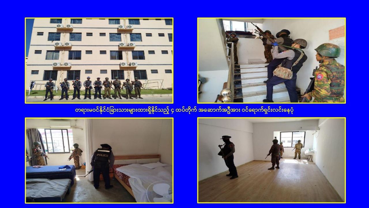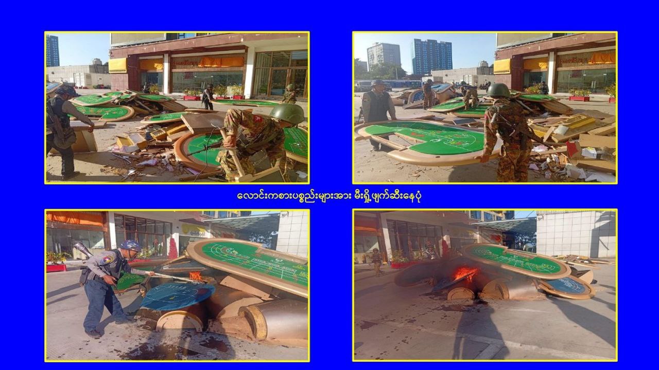 မြန်မာနိုင်ငံအစိုးရအနေဖြင့် အွန်လိုင်းလိမ်လည်မှုများနှင့် အွန်လိုင်းလောင်းကစားမှုများ အများဆုံးအခြေချလုပ်ကိုင်လျက်ရှိကြသည့် ရွှေကုက္ကိုလ်နယ်မြေနှင့် KK Park နယ်မြေများ၌ လုံခြုံရေးတပ်ဖွဲ့ဝင်များ၊ အုပ်ချုပ်ရေးအဖွဲ့အစည်းများနှင့် ဒေသတွင်းတာဝန်ရှိသူများအပါအဝင် အဖွဲ့စုံပါဝင်သည့် ပူးပေါင်းစစ်ဆင်ရေးအဖွဲ့များဖြင့် တရားမဝင်အဆောက်အအုံများအတွင်း ဝင်ရောက်ရှင်းလင်းခြင်း၊ အွန်လိုင်းလိမ်လည်လောင်းကစားမှုလုပ်ငန်းစဉ်များတွင်အသုံးပြုခဲ့သည့် သိမ်းဆည်းရမိပစ္စည်းများနှင့် တရားမဝင်အဆောက်အအုံများအား စနစ်တကျဖြိုချဖျက်ဆီးခြင်းများ ဆက်လက်ဆောင်ရွက်လျက်ရှိသည်။