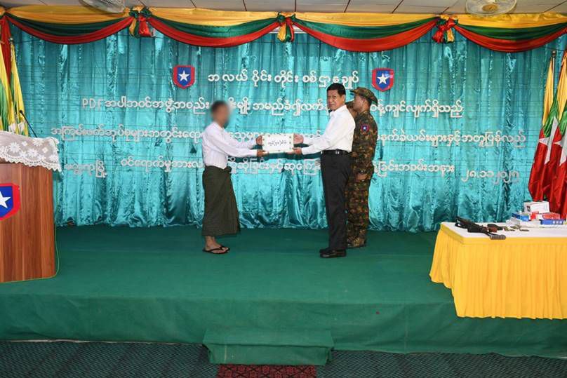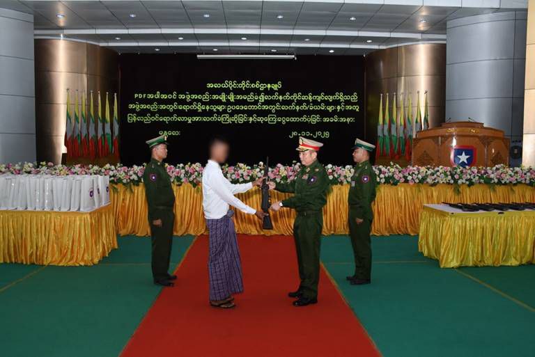 နိုင်ငံတော်အစိုးရသည် PDF အပါအဝင် အဖွဲ့အစည်းအမျိုးမျိုးအမည်ခံ၍ လက်နက်ကိုင်ဆန့်ကျင်လျက်ရှိသည့် အဖွဲ့အစည်းများအတွင်း ရောက်ရှိနေသူများအား ဥပဒေဘောင်အတွင်းသို့ ပြန်လည်ဝင်ရောက်ရန် ဖိတ်ခေါ်၍ ဥပဒေဘောင်အတွင်းသို့ ပြန်လည်ဝင်ရောက်လာကြသူများကိုလည်း လိုအပ်သည့် ကူညီပံ့ပိုးမှုများ ဆောင်ရွက်ပေးလျက်ရှိရာ နိုင်ငံတော်နှင့် တပ်မတော်၏ ငြိမ်းချမ်းရေးလုပ်ငန်းစဉ်များကို နားလည်သဘောပေါက်လာသည့် PDF အမည်ခံအဖွဲ့ဝင် အမျိုးသား ၆၇ ဦးနှင့် အမျိုးသမီး ၁၆ ဦး၊ ပေါင်း ၈၃ ဦးတို့သည် လက်နက်၊ ခဲယမ်းများနှင့်အတူ ယနေ့တွင် ဥပဒေဘောင်အတွင်းသို့ ဝင်ရောက်လာကြသည်။