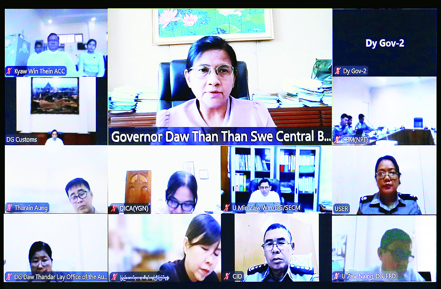 ဦးစွာ လုပ်ငန်းအဖွဲ့၏ဥက္ကဋ္ဌ၊ မြန်မာနိုင်ငံတော်ဗဟိုဘဏ်ဥက္ကဋ္ဌ ဒေါ်သန်းသန်းဆွေက မြန်မာနိုင်ငံ၏ ငွေကြေးခဝါချမှုနှင့် အကြမ်းဖက်မှုကို ငွေကြေးထောက်ပံ့မှုတိုက်ဖျက်ရေး အကောင်အထည်ဖော်ဆောင်ရွက်မှုဆိုင်ရာ (၁၆)ကြိမ်မြောက် တိုးတက်မှုအစီရင်ခံစာအပေါ် အာရှပစိဖိတ်ဒေသပူးတွဲအဖွဲ့(APJG)မှ အကဲဖြတ်သူများ၏ ထပ်မံမေးမြန်းအကြံပြုချက်များကို ထိရောက်မှန်ကန်စွာ ပြန်လည်ရှင်းလင်းဖြေကြားနိုင်ရေးအတွက် လိုအပ်သည့်အချက်အလက်များနှင့် ထပ်မံဖြည့်စွက်ဖြေကြားရမည့် အချက်အလက်များကိုလည်းကောင်း၊ APJG မျက်နှာချင်းဆိုင် အစည်းအဝေးတက်ရောက်ရာတွင် ကြိုတင်ပြင်ဆင်ရန်လိုအပ်သည့်အချက်များကိုလည်းကောင်း ဆွေးနွေးပြောကြားသည်။