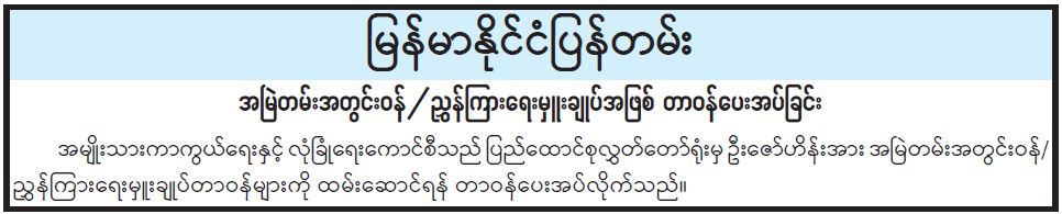 ဦးစီးဌာနနှင့် လုပ်ငန်းများ၏ ကြေညာချက်များ