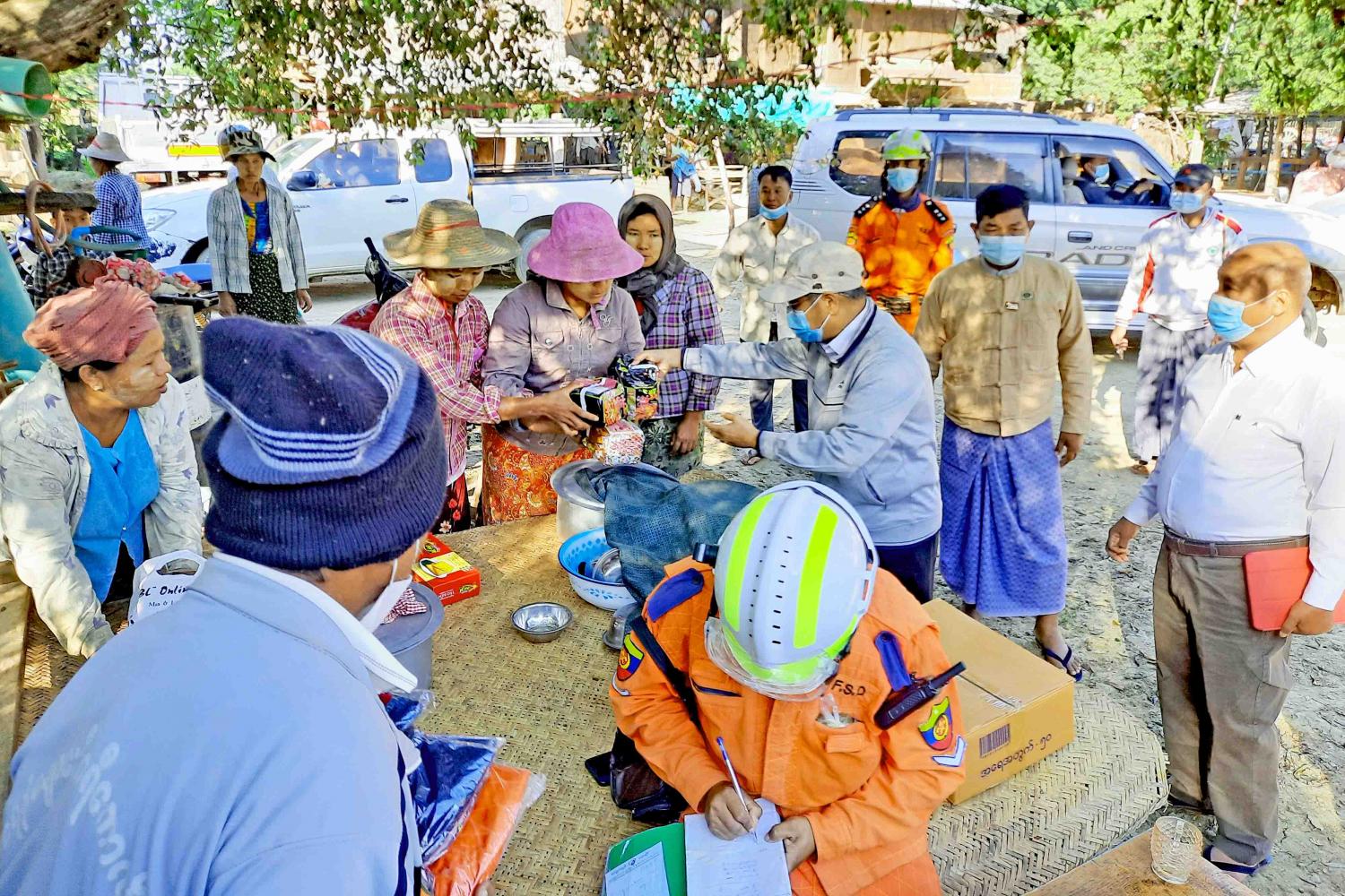 ထိုသို့ ထောက်ပံ့ငွေများ ပေးအပ်ရာတွင် မကွေးတိုင်းဒေသကြီးအစိုးရအဖွဲ့ ဝန်ကြီးချုပ် ဒေါက်တာအောင်မိုးညိုနှင့် တာဝန်ရှိသူများက ဧရာဝတီမြစ်ကမ်းပါးပြိုကျမှုကြောင့် လူနေအိမ်များ ဘေးလွတ်ရာသို့ ကူညီရွှေ့ပြောင်းပေးကြသော မြို့နယ်အထွေထွေအုပ်ချုပ်ရေးဦးစီးဌာနမှ ဝန်ထမ်းများ ၊ မြို့နယ်မီးသတ်တပ်ဖွဲ့ဝင်များ ၊ နယ်မြေရဲတပ်ဖွဲ့ဝင်များ ၊ လူမှုကူညီ ရေးအသင်းအဖွဲ့များနှင့် ဒေသခံပြည်သူများ စုပေါင်း၍ ဝိုင်းဝန်းကူညီရွှေ့ပြောင်းပေးနေမှုအခြေအနေများကို ကြည့်ရှုပြီး ပြည်သူများ အခက်အခဲမဖြစ်စေရေးအတွက် စနစ်တကျ ကူညီရွှေ့ပြောင်းပေးကြရန် ဆွေးနွေးမှာကြားသည်။