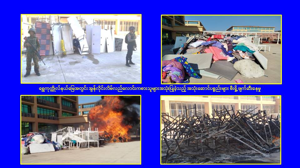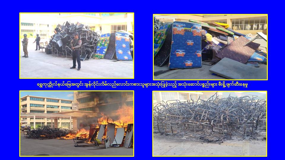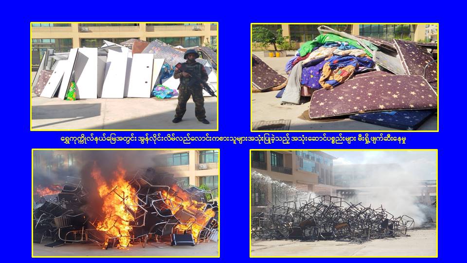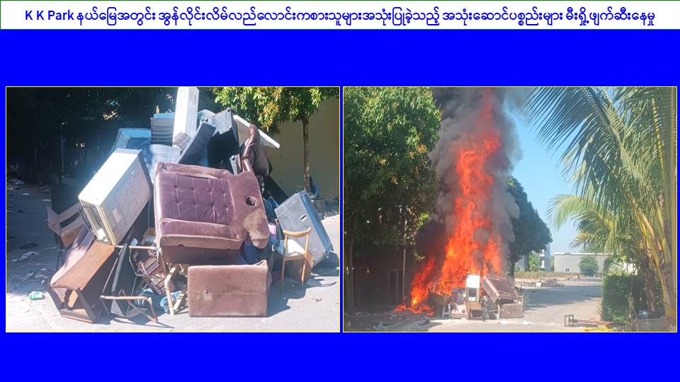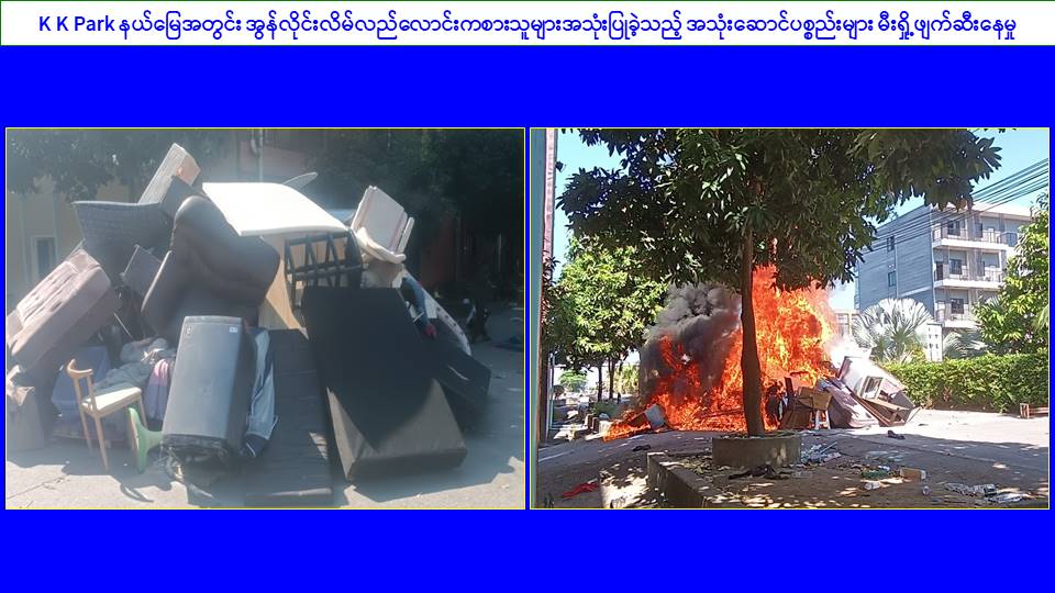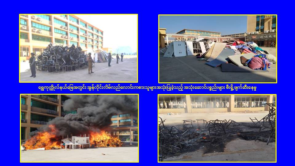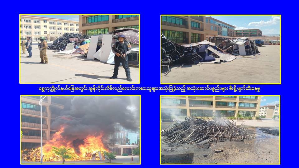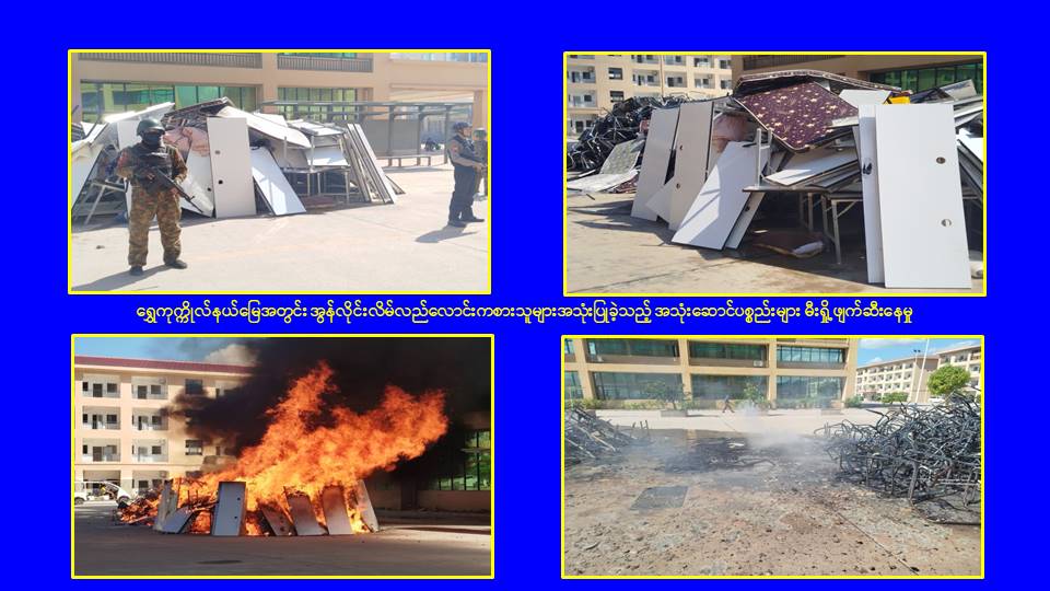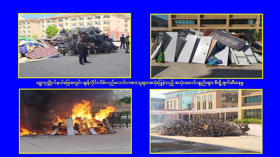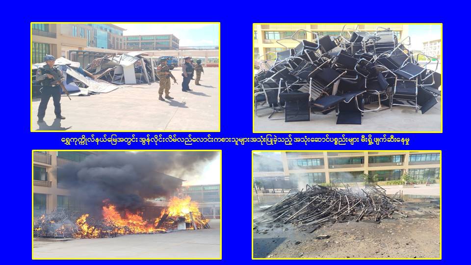 ၎င်းအပြင် မြဝတီမြို့နယ်အတွင်းရှိ KK Park နယ်မြေနှင့် ရွှေကုက္ကိုလ်နယ်မြေတို့၌ အွန်လိုင်းလိမ်လည်လောင်းကစားမှုကျူးလွန်ရာတွင် အသုံးပြုသည့်ပစ္စည်းများအား ထပ်မံ၍ အသုံးပြုနိုင်ခြင်းမရှိစေရန်အတွက်ယနေ့တွင်လည်း စနစ်တကျမီးရှို့ဖျက်ဆီးခဲ့ကြောင်း သိရှိရသည်။
