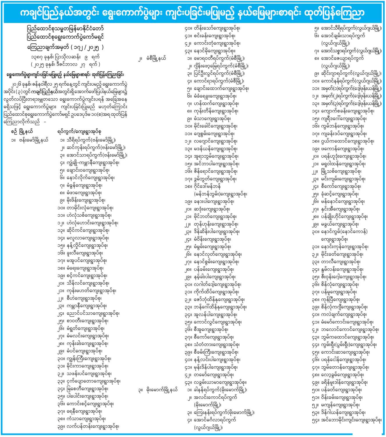 ပဲခူးတိုင်းဒေသကြီးအတွင်း ရွေးကောက်ပွဲများကျင်းပခြင်းမပြုမည့် နယ်မြေများစာရင်း ထုတ်ပြန်ကြေညာ
