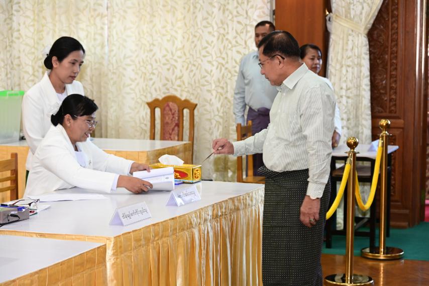 ထိုသို့ ဆန္ဒမဲများပေးကြရာ နိုင်ငံတော်ယာယီသမ္မတ နိုင်ငံတော်လုံခြုံရေးနှင့် အေးချမ်းသာယာရေးကော်မရှင်ဥက္ကဋ္ဌ ဗိုလ်ချုပ်မှူးကြီး မင်းအောင်လှိုင်သည် ပြည်ထောင်စုအဆင့်ပုဂ္ဂိုလ်များနှင့် ဇနီးများ၊ ကာကွယ်ရေးဦးစီးချုပ်ရုံးမှ အဆင့်မြင့်တပ်မတော်အရာရှိကြီးများနှင့် ဇနီးများ၊ အရာရှိ၊ စစ်သည်၊ မိသားစုဝင်များနှင့်အတူ နေပြည်တော်ကောင်စီနယ်မြေ၊ ဇေယျာသီရိမြို့နယ်၊ အနော်ရထာရပ်ကွက်ရှိ မဲရုံအမှတ်(၁)၌ ပါဝင်ဆန္ဒမဲပေးသည်။