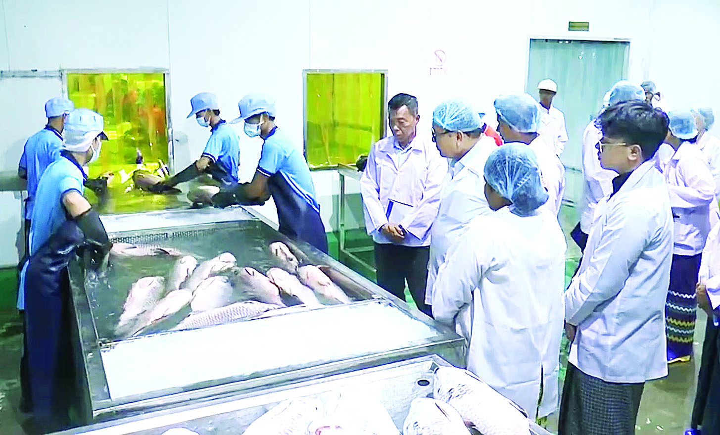 အလားတူ CK FROZEN FOODS YANGON CO.,LTD သို့လည်းကောင်း၊ ADVANCED SEAFOOD INDUSTRIES CO., LTD သို့ လည်းကောင်း၊ သာကေတမြို့နယ်ရှိ MYANMAR GOLDEN PHOENIX INDUSTRIAL CO., LTD သို့လည်းကောင်း သွားရောက်ကြည့်ရှုစစ်ဆေးပြီး ပုပ္ပလိကလုပ်ငန်းရှင်များ၏ တင်ပြချက်များအပေါ် ဒုတိယဝန်ကြီးက ရေထွက်ကုန်ပစ္စည်းများ ပြည်ပသို့ တင်ပို့ရာမှ နိုင်ငံခြားဝင်ငွေ အမြောက်အမြား နှစ်စဉ်ရရှိလျက်ရှိရာ နိုင်ငံတကာ အသိအမှတ်ပြု တန်ဖိုးမြင့် ရေထွက်ကုန်များ နှစ်အလိုက်တန်ချိန် ပိုမိုတိုးထုတ်တင်ပို့နိုင်ရေး ကြိုးစားဆောင်ရွက်ကြရန် လိုအပ်ပါကြောင်း၊ ယင်းသို့ လုပ်ငန်းဆောင်ရွက်ရာတွင်လည်း အခက်အခဲများ၊ လိုအပ် ချက်ရှိသည်များကို မိမိတို့ဌာနအနေဖြင့် တတ်စွမ်းအားရှိသမျှ ဘက်စုံထောင့်စုံမှ ပူးပေါင်းကူညီဆောင်ရွက်ပေးရန်လည်း အသင့်ရှိပါကြောင်း ပြောကြားကာ စက်ရုံအတွင်း လုပ်ငန်းဆောင်ရွက်နေမှုအဆင့်ဆင့်အား ကြည့်ရှုစစ်ဆေးပြီး လိုအပ်သည်များ ဖြည့်စွက်ဆွေးနွေးမှာကြားခဲ့ကြောင်း သိရသည်။