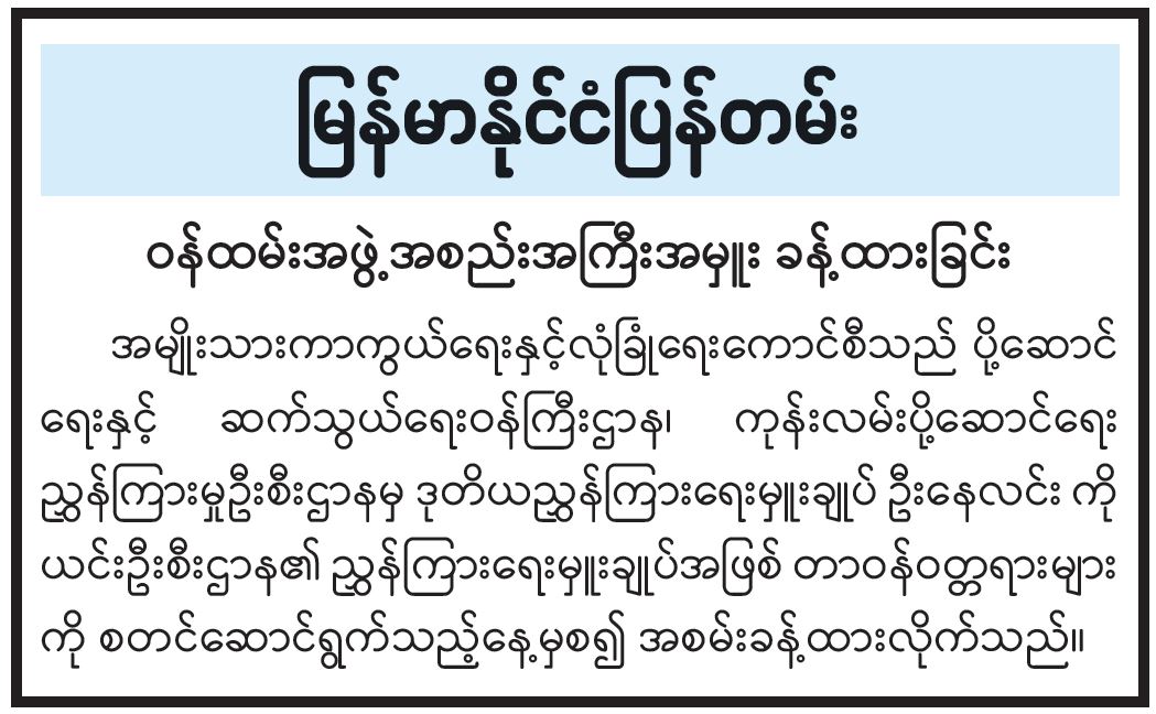ဦးစီးဌာနနှင့် လုပ်ငန်းများ၏ ကြေညာချက်များ