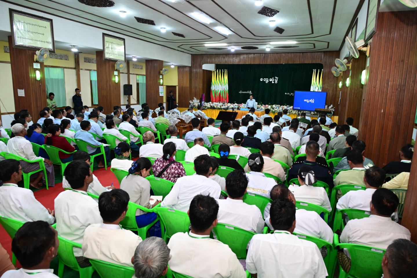 ပြည်ထောင်စုသမ္မတမြန်မာနိုင်ငံတော် ယာယီသမ္မတ နိုင်ငံတော်လုံခြုံရေးနှင့်အေးချမ်းသာယာရေးကော်မရှင်ဥက္ကဋ္ဌ ဗိုလ်ချုပ်မှူးကြီး မင်းအောင်လှိုင် ပန်းတောင်းမြို့ရှိ မြို့နယ်အဆင့်ဌာနဆိုင်ရာတာဝန်ရှိသူများ၊ မြို့မိမြို့ဖများနှင့်တွေ့ဆုံ၍ ဒေသဖွံ့ဖြိုးတိုးတက်ရေးဆိုင်ရာများဆွေးနွေး
