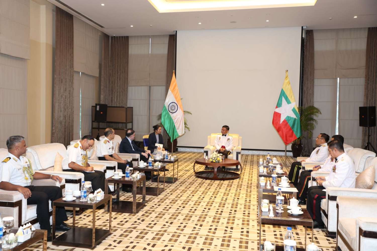 ထို့ပြင် နိုင်ငံတော်လုံခြုံရေးနှင့် အေးချမ်းသာယာရေးကော်မရှင်အဖွဲ့ဝင် ညှိနှိုင်းကွပ်ကဲရေးမှူး(ကြည်း၊ ရေ၊ လေ) ဗိုလ်ချုပ်ကြီးကျော်စွာလင်းသည် အိန္ဒိယတပ်မတော်၊ အမှတ်(၃) တပ်မကြီးမှူး Lieutenant General AS Pendharkar, AVSM, YSM ဦးဆောင်သောအဖွဲ့ဝင်များအား ယနေ့ညနေပိုင်းတွင် အဆိုပါဟိုတယ်၌ လက်ခံတွေ့ဆုံသည်။