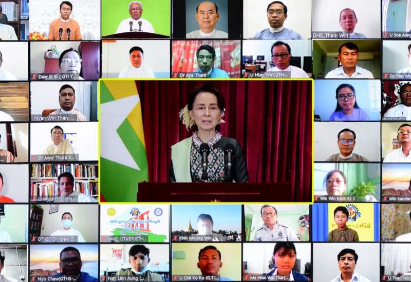 Coronavirus Disease 2019 (COVID – 19) ကာကွယ်၊ ထိန်းချုပ်၊ ကုသရေးအမျိုးသား အဆင့်ဗဟိုကော်မတီအစည်းအဝေးကို ယနေ့ နံနက်ပိုင်းတွင် ကျင်းပရာ ဗဟိုကော်မတီဥက္ကဋ္ဌ၊ နိုင်ငံတော်၏ အတိုင်ပင်ခံပုဂ္ဂိုလ် ဒေါ်အောင်ဆန်းစုကြည် တက်ရောက်သည်။