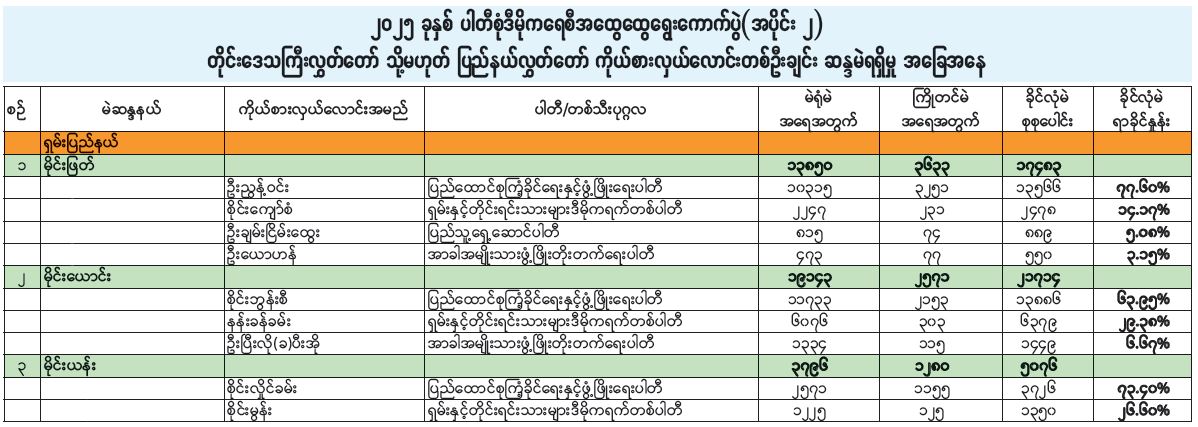 ၂၀၂၅ ခုနှစ် ပါတီစုံဒီမိုကရေစီအထွေထွေရွေးကောက်ပွဲ (အပိုင်း ၂) တိုင်းဒေသကြီးလွှတ်တော် သို့မဟုတ် ပြည်နယ်လွှတ်တော် ကိုယ်စားလှယ်လောင်းတစ်ဦးချင်း ဆန္ဒမဲရရှိမှု အခြေအနေ