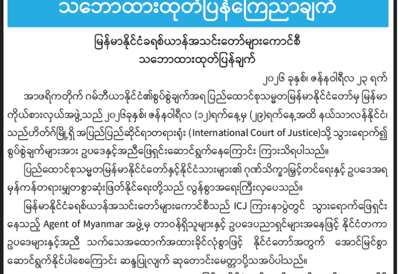 ကျွန်မအနေနဲ့ ရခိုင်ပြည်နယ်က နေရပ်စွန့်ခွာသူတွေကို ပြန်လည်လက်ခံရေးအတွက် လူဝင်မှုကြီးကြပ်ရေးနှင့်ပြည်သူ့အင်အားဝန်ကြီးဌာနက ဆောင်ရွက်ထားရှိမှုအခြေအနေတွေကို ရှင်းလင်းပြောကြားမှာ ဖြစ်ပါတယ်။