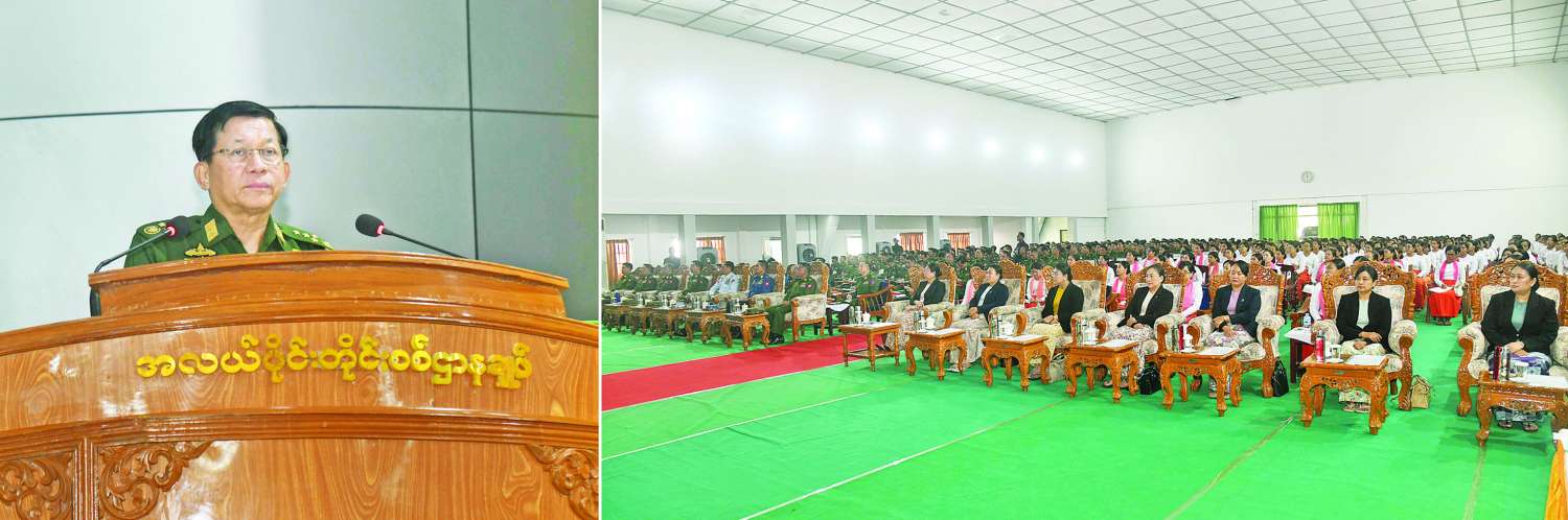 မိမိအနေဖြင့် နိုင်ငံတော်တာဝန်ထမ်းဆောင်ချိန်တွင် တပ်မတော်သားများနှင့် မြန်မာနိုင်ငံရဲတပ်ဖွဲ့ဝင်များ၊ မြန်မာနိုင်ငံမီးသတ်တပ်ဖွဲ့ဝင်များအတွက် ထောက်ပံ့ကြေးများနှင့် သက်စွန့်ဆံဖျားစရိတ်များ တိုးမြှင့်ဆောင်ရွက်ပေးခဲ့ကြောင်း၊ တပ်မတော်သားမိသားစုဝင်များ၏ နေရေး၊ စားရေးနှင့် ဝတ်ရေးကိစ္စရပ်များ အဆင်ပြေချောမွေ့စေရေးအတွက်လည်း လိုအပ်သည်များကို ဖြည့်ဆည်းဆောင်ရွက်ပေးလျက်ရှိနေကြောင်း၊ တပ်မတော်အကြီးအကဲတစ်ဦးအနေဖြင့် မိမိဦးဆောင်ကွပ်ကဲအုပ်ချုပ်နေရသည့် အဖွဲ့အစည်းနှင့် မိမိတပ်ဖွဲ့ဝင်များကို မည်ကဲ့သို့မြှင့်တင်ဆောင်ရွက်ပေးရမည်ကို အမြဲမပြတ်စဉ်းစား၍ လိုအပ်သည်များ စီမံဆောင်ရွက်ပေးခဲ့ကြောင်း၊ တပ်မတော်အနေဖြင့် နိုင်ငံတော်တွင် ကျရောက်လာနိုင်သည့် မည်သည့်အန္တရာယ်ရန်စွယ်ကိုမဆို ကာကွယ်ရန် တာဝန်ရှိသည်ဖြစ်သဖြင့် စွမ်းရည်စွမ်းအားရှိသည့်တပ်မတော်ဖြစ်စေရေး ဆက်လက်ကြိုးပမ်းတည်ဆောက်သွားကြရမည်ဖြစ်ကြောင်းဖြင့် မှာကြားပြီး အရာရှိ၊ စစ်သည်များ၏ လိုအပ်ချက်များကို မေးမြန်းသည်။