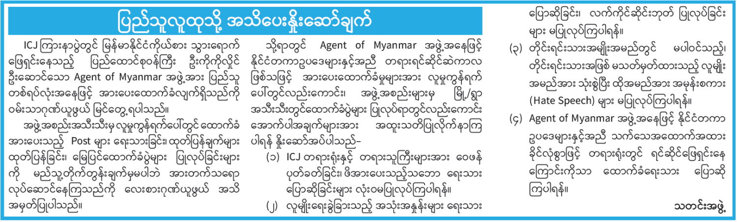 ပြည်သူလူထုသို့ အသိပေးနှိုးဆော်ချက်