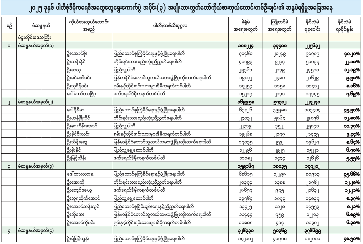 ၂၀၂၅ ခုနှစ် ပါတီစုံဒီမိုကရေစီအထွေထွေရွေးကောက်ပွဲ အပိုင်း(၃) အမျိုးသားလွှတ်တော်ကိုယ်စားလှယ်လောင်းတစ်ဦးချင်း၏ ဆန္ဒမဲရရှိမှုအခြေအနေ 01/30/2026