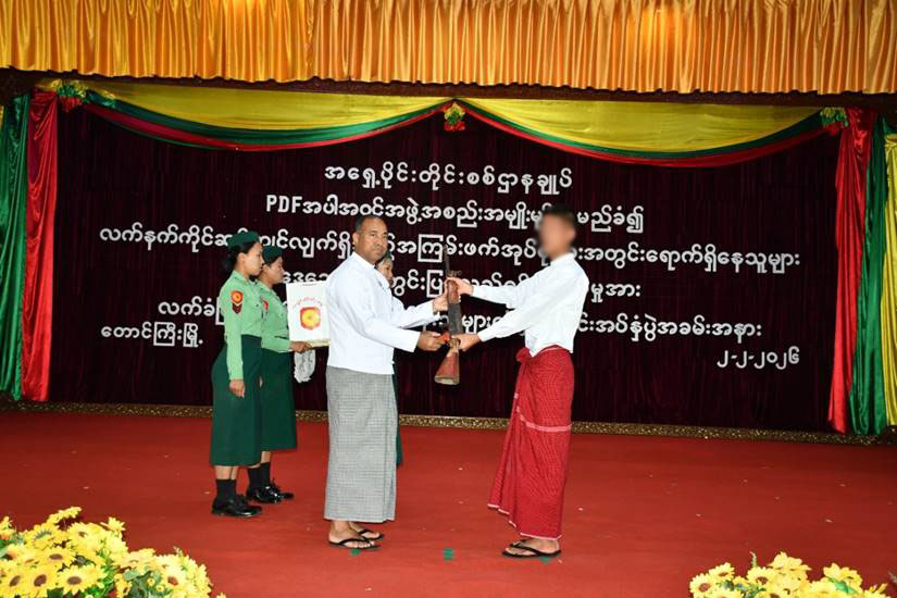 နိုင်ငံတော်အစိုးရသည် PDF အပါအဝင် အဖွဲ့အစည်းအမျိုးမျိုးအမည်ခံ၍ လက်နက်ကိုင်ဆန့်ကျင်လျက်ရှိသည့် အဖွဲ့အစည်းများအတွင်း ရောက်ရှိနေသူများအား ဥပဒေဘောင်အတွင်းသို့ ပြန်လည်ဝင်ရောက်ရန် ဖိတ်ခေါ်၍ ဥပဒေဘောင်အတွင်းသို့ ပြန်လည်ဝင်ရောက်လာကြသူများကိုလည်း လိုအပ်သည့် ကူညီပံ့ပိုးမှုများ ဆောင်ရွက်ပေးလျက်ရှိရာ နိုင်ငံတော်နှင့် တပ်မတော်၏ ငြိမ်းချမ်းရေးလုပ်ငန်းစဉ်များကို နားလည်သဘောပေါက်လာသည့် KNDF အဖွဲ့မှ အမျိုးသား ၃ ဦး၊ အင်းလေး PDF အဖွဲ့မှ အမျိုးသား ၁ ဦး၊ ရှမ်း(တောင်)PDF အဖွဲ့မှ အမျိုးသား ၂ ဦး၊ DPLA အဖွဲ့မှ အမျိုးသား ၁၂ ဦး၊ အမျိုးသမီး ၆ဦး၊ စုစုပေါင်းအမျိုးသား ၁၈ ဦးနှင့် အမျိုးသမီး ၆ ဦး တို့သည် လက်နက်၊ ခဲယမ်းများနှင့်အတူ ယနေ့တွင် ဥပဒေဘောင်အတွင်းသို့ ဝင်ရောက်လာကြသည်။