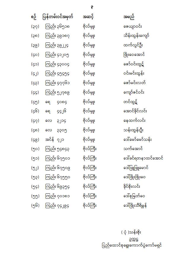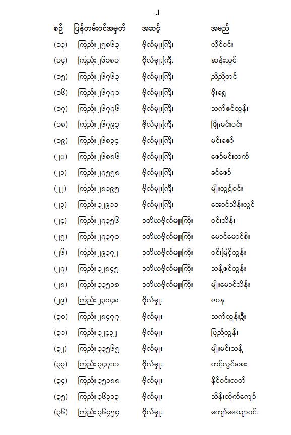 တပ်မတော်သား အမျိုးသားလွှတ်တော်ကိုယ်စားလှယ် အမည်စာရင်းကြေညာခြင်း