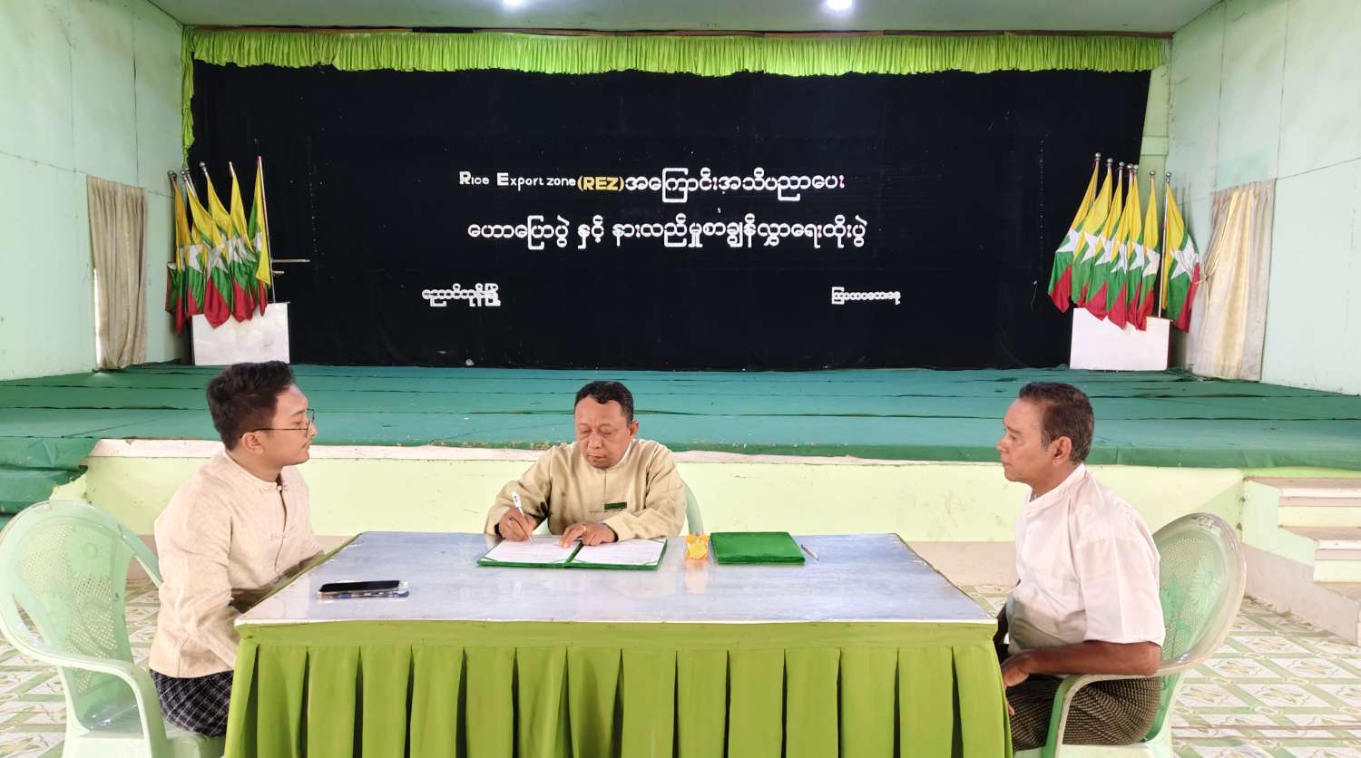 ဆက်လက်၍ မြန်မာနိုင်ငံမျိုးစေ့အသင်း အမှုဆောင်အရာရှိ ဒေါ်အတာမေက မျိုးစေ့များအကြောင်းနှင့် မျိုးကောင်းမျိုးသန့် ရွေးချယ်စိုက်ပျိုးနိုင်ရေး အသိပညာပေး အကြောင်းအရာများကိုလည်းကောင်း ရှင်းလင်းပြောကြားခဲ့ပြီး  Rice Export zone(REZ)အား စိတ်ပါဝင်စားသည့် မြို့နယ်အတွင်းရှိ တောင်သူများနှင့် အောင်ကမ္ဘာဆုထရေးဒင်း ကုမ္ပဏီလီမိတက်တို့အကြား နားလည်မှုစာချွန်လွှာ ရေးထိုးခဲ့ကြောင်းသိရသည်။