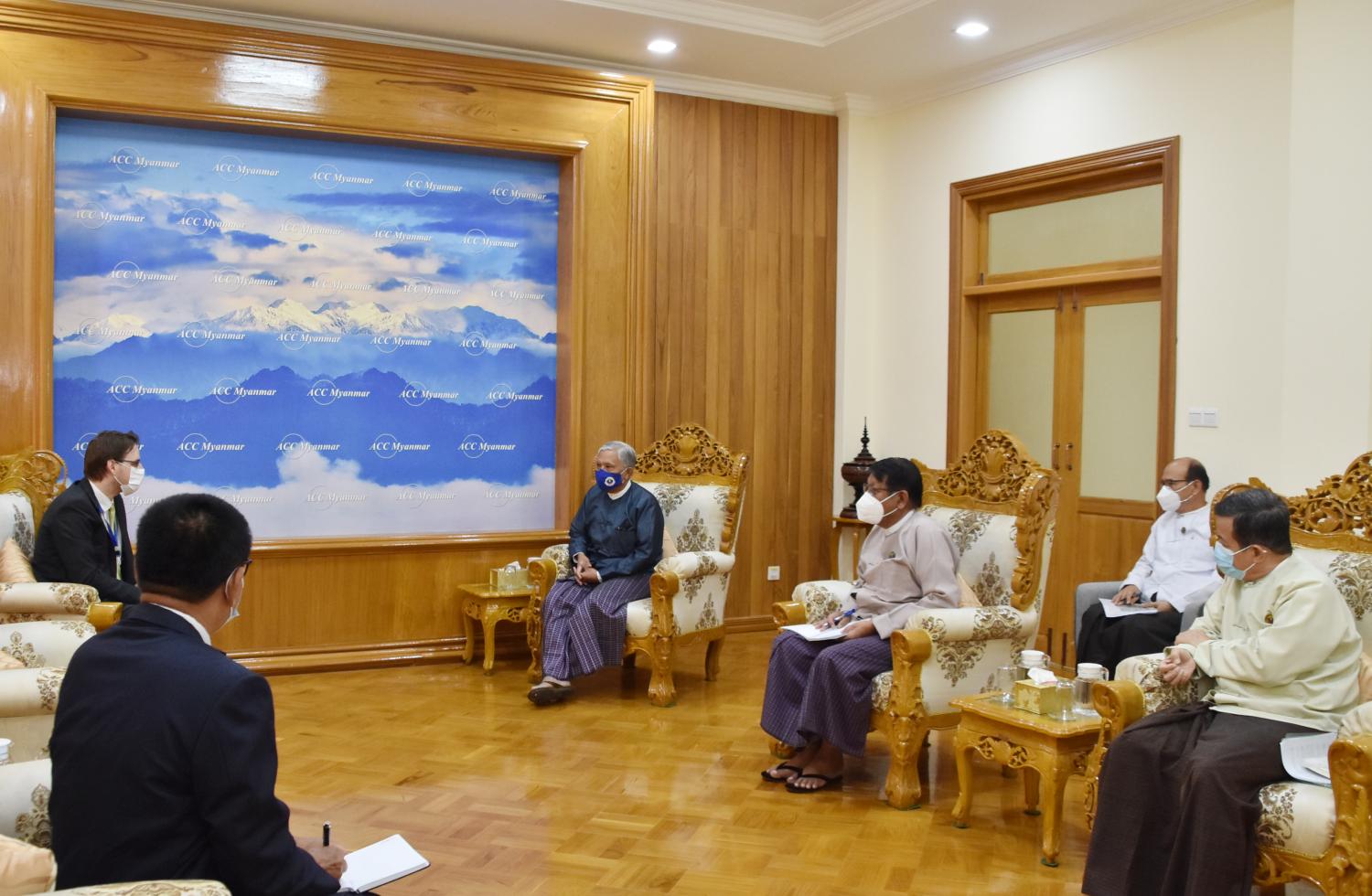 အဂတိလိုက်စားမှုတိုက်ဖျက်ရေးကော်မရှင် ဥက္ကဋ္ဌ ဦးအောင်ကြည်သည် မြန်မာနိုင်ငံ ဆိုင်ရာ UNODC ၏ Country Manager အဖြစ် ခန့်အပ်ခြင်းခံရသည့် Mr. Benedikt Hofmann အား ယနေ့ မွန်းလွဲ ၂ နာရီခွဲတွင် နေပြည်တော်ရှိ အဂတိလိုက်စားမှု တိုက်ဖျက်ရေးကော်မရှင်ရုံး၊ ဧည့်ခန်းမ၌ လက်ခံတွေ့ဆုံသည်။