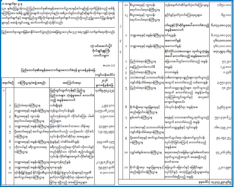 ဦးစီးဌာနနှင့် လုပ်ငန်းများ၏ ကြေညာချက်များ