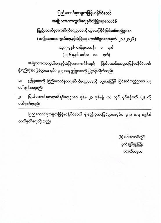 ရန်ကုန်မြို့နှင့် မန္တလေးမြို့အတွက် ရည်ညွှန်းလက်ကားဈေးနှုန်းများနှင့် ပြည်ထောင်စုနယ်မြေ နေပြည်တော်၊ တိုင်းဒေသကြီး/ ပြည်နယ်မြို့တော်များအတွက် ရည်ညွှန်းလက်လီဈေးနှုန်းများ