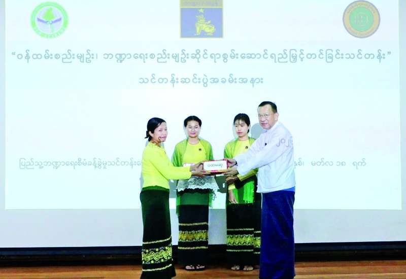 ယင်းနောက် ပြည်ထောင်စုဝန်ကြီးက တိုင်းရင်းသားစာပေနှင့် ယဉ်ကျေးမှုဆိုင်ရာကိစ္စရပ်များ ပိုမိုထိန်းသိမ်းမြှင့်တင် ဆောင်ရွက်နိုင်ရန်အတွက် မွန်၊ ဗမာ၊ ကရင်၊ ပအိုဝ်းတိုင်းရင်းသား စာပေနှင့် ယဉ်ကျေးမှု အသင်းဖွဲ့များနှင့် ဝန်ထမ်းများကို ချီးမြှင့်ငွေများ ပေးအပ်သည်။