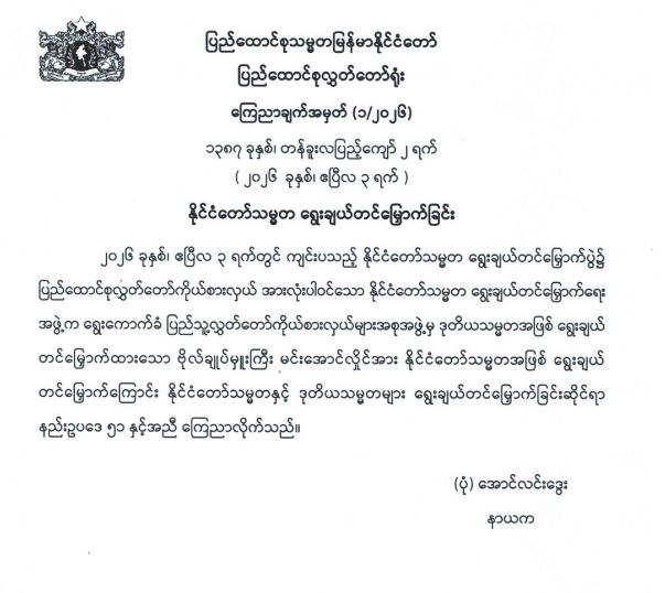 နိုင်ငံတော်အစိုးရ၏ ကြေညာချက်များ