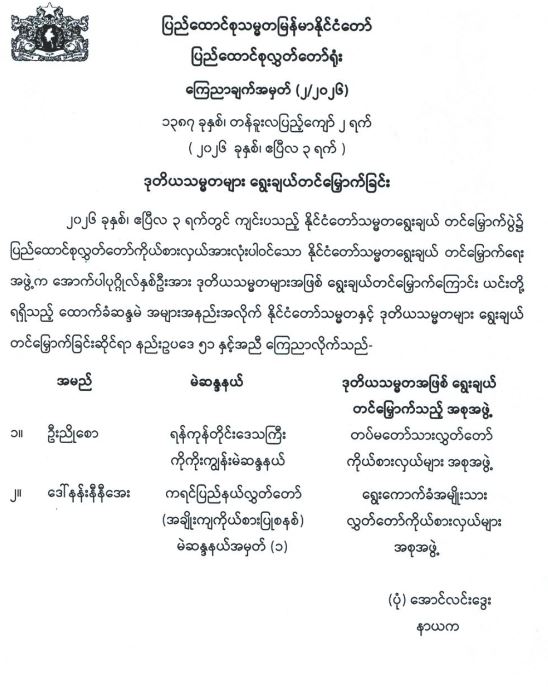 ဝန်ကြီးဌာန ကြေညာချက်များ