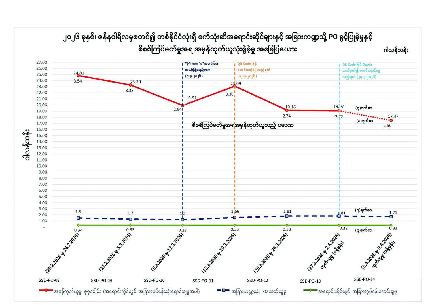 ၂၀၂၆ ခုနှစ် ဖေဖော်ဝါရီလ ၂၀ ရက်နေ့မှ ယနေ့ထိ စာရင်းများအရ နေ့စဉ် ပျမ်းမျှ စက်သုံးဆီသုံးစွဲမှုသည် ၃ ဒသမ ၅၄ ဂါလန်သန်းမှ ၂ ဒသမ ၅ ဂါလန် သန်းသို့ ကျဆင်းလာခဲ့သည်ကို တွေ့ရှိ ရပါသည်။ ယင်းသို့ နေ့စဉ်ပျမ်းမျှသုံးစွဲမှုနှုန်း ၂၉ ရာခိုင်နှုန်း လျှော့ချနိုင်ခြင်းသည် တစ်ရက်လျှင် နိုင်ငံခြားငွေသုံးစွဲမှု အမေရိကန်ဒေါ်လာ ခြောက်သန်းခန့် သက်သာစေမည်ဖြစ်သည့်အပြင် အရန်ဆီသိုလှောင်နိုင်မှု ၁၀ ရက်စာ ပိုမို သိုလှောင်လာနိုင်မည် ဖြစ်ပါသည်။
