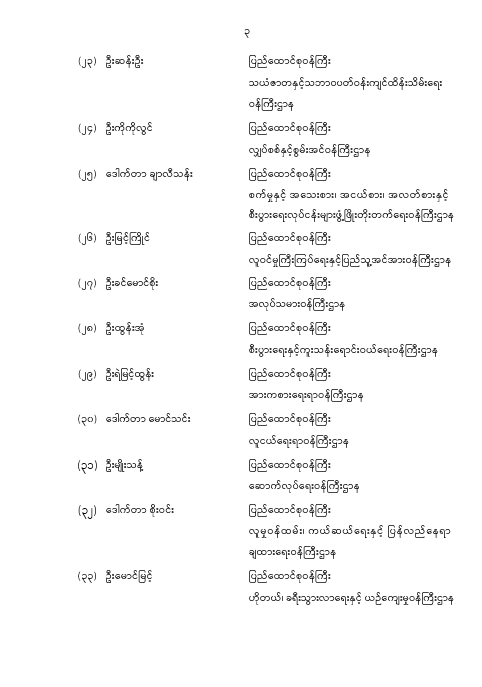 နေပြည်တော်စည်ပင်သာယာရေးကော်မတီ ဒုတိယဥက္ကဋ္ဌ၊ ဒုတိယမြို့တော်ဝန် ပူးတွဲတာဝန်ပေးအပ်ခြင်း