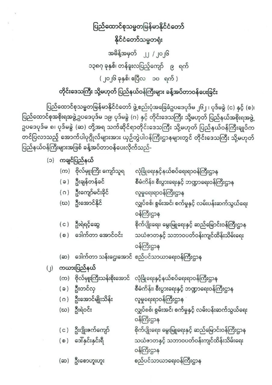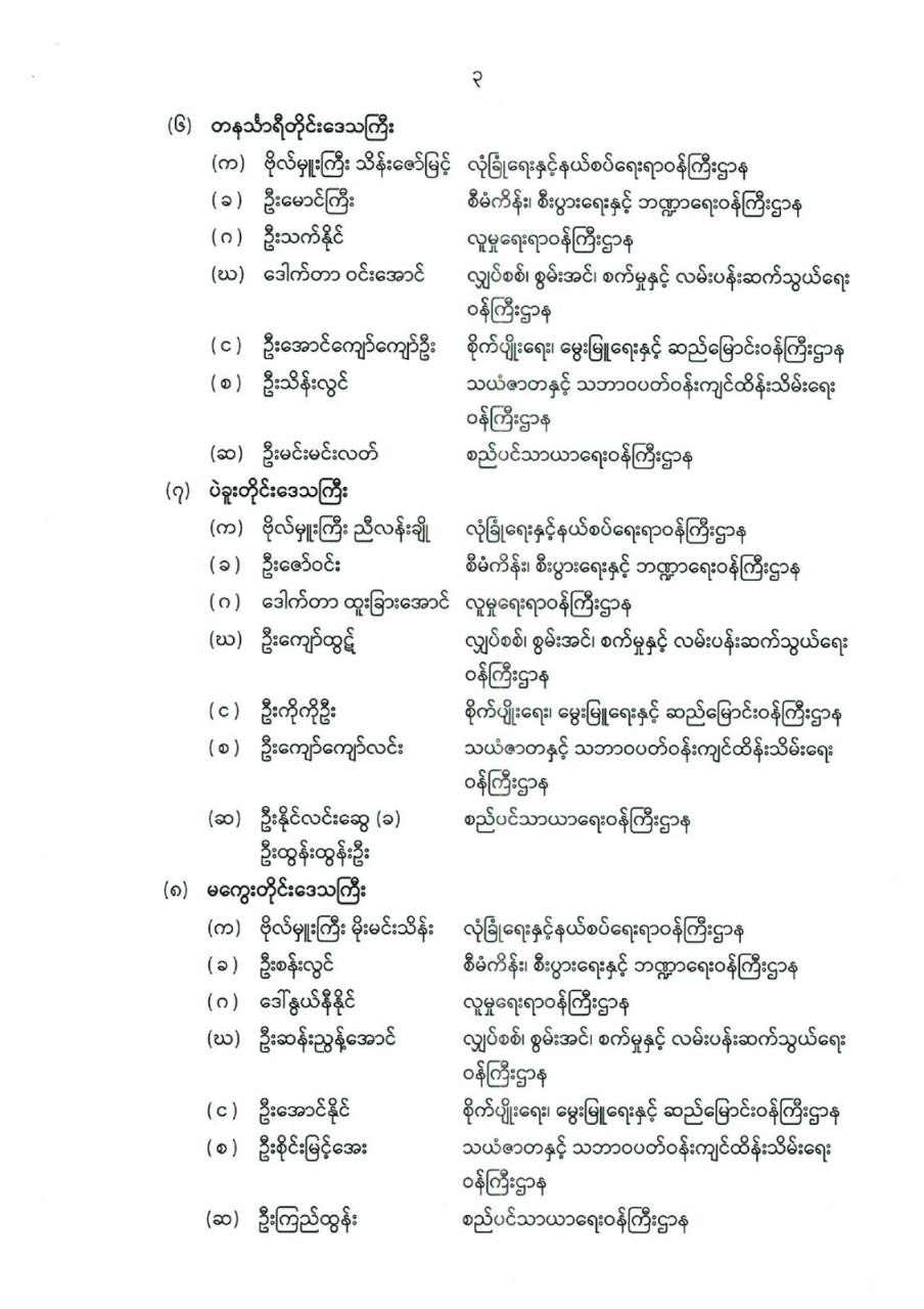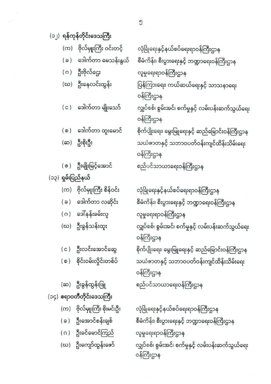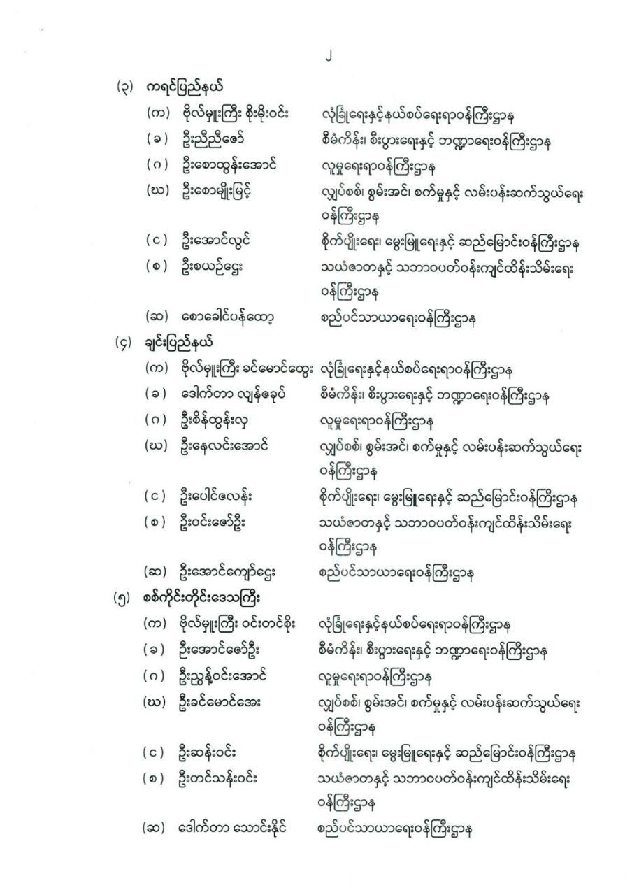 နေပြည်တော်စည်ပင်သာယာရေးကော်မတီ ဒုတိယဥက္ကဋ္ဌ၊ ဒုတိယမြို့တော်ဝန် ပူးတွဲတာဝန်ပေးအပ်ခြင်း