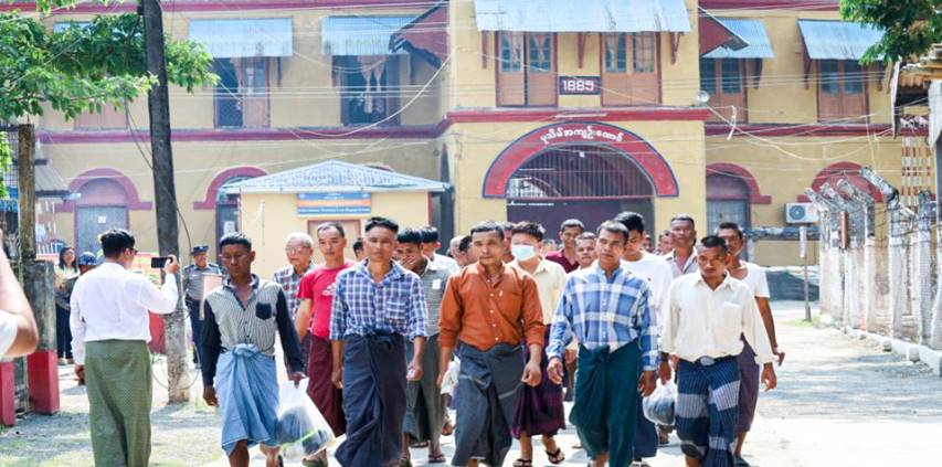 အကျဉ်းသားများအား လွှတ်ပေးရာတွင် အကျဉ်းထောင်ရုံးစိုက်ရာမြို့ရှိ လုံခြုံရေးနှင့် နယ်စပ်ရေးရာဝန်ကြီး၊ တိုင်းဒေသကြီး/ ပြည်နယ်ရဲတပ်ဖွဲ့မှူး၊ အကျဉ်းဦးစီးဌာန ညွှန်ကြားရေးမှူး၊ အကျဉ်းထောင် တာဝန်ခံအရာရှိ၊ သက်ဆိုင်ရာဒေသရှိ ခရိုင်/ မြို့နယ်အုပ်ချုပ်ရေးမှူးများ၊ ခရိုင်/မြို့နယ်ရဲတပ်ဖွဲ့မှူးများ၊ သတင်းရဲတပ်ဖွဲ့၊ အထူးစုံစမ်းစစ်ဆေးရေးဦးစီးဌာနနှင့် လူဝင်မှုကြီးကြပ်ရေးနှင့်ပြည်သူ့အင်အားဆိုင်ရာရုံးတို့ ပါဝင်သောအဖွဲ့ဖြင့် ဆုံးမသြဝါဒစကား ပြောကြား၍ ထောင်လွတ် လက်မှတ်ပေးအပ်ခဲ့ကြောင်း သိရသည်။