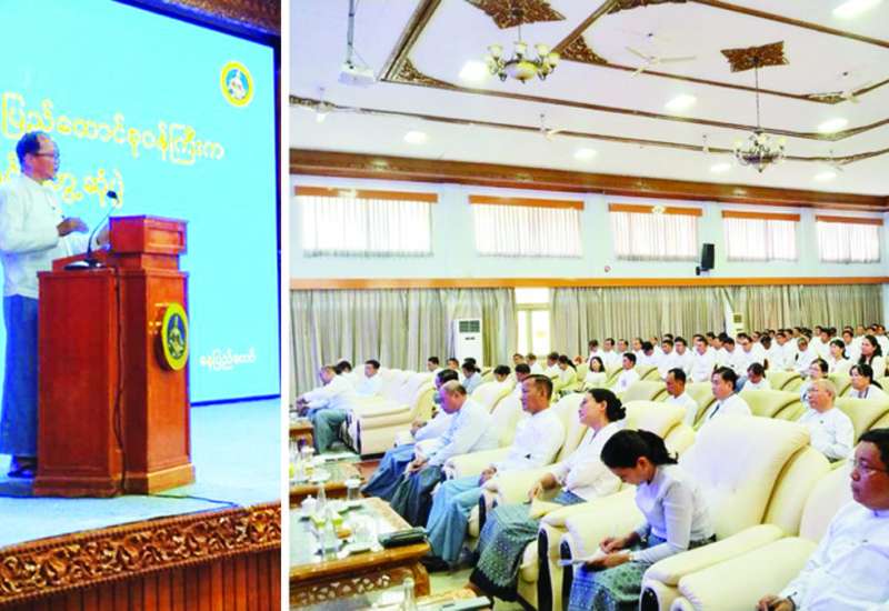 နိုင်ငံတော်သမ္မတ၏ လမ်းညွှန်ချက်များကို ဝန်ထမ်းများအား ထပ်ဆင့်ရှင်းလင်းခြင်းနှင့် အရာထမ်း၊ အမှုထမ်းများအား တွေ့ဆုံပွဲကို ယနေ့မွန်းလွဲပိုင်းတွင် နေပြည်တော် ဝဏ္ဏသိဒ္ဓိအားကစားကွင်းအတွင်းရှိ အားကစားရုံ(A)၌ကျင်းပရာ အားကစားရေးရာဝန်ကြီးဌာန ပြည်ထောင်စုဝန်ကြီး ဦးရဲမြင့်ထွန်း၊ ဒုတိယဝန်ကြီး ဦးညီညီ၊ အမြဲတမ်းအတွင်းဝန်နှင့် တာဝန်ရှိသူများ၊ အရာထမ်း၊ အမှုထမ်းအင်အား ၈၀၀ ကျော် တက်ရောက်ကြသည်။