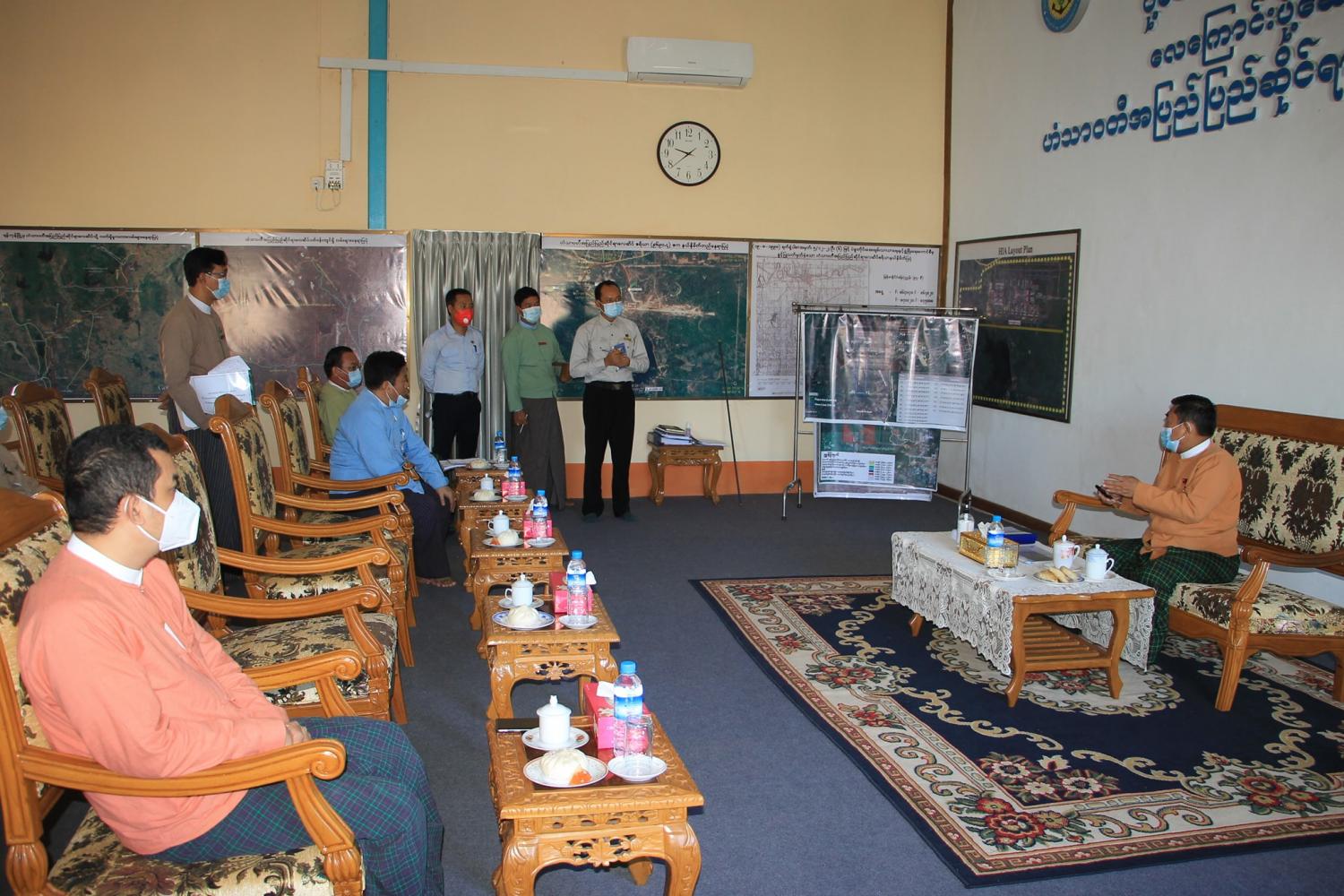 ရှေးဦးစွာ လေဆိပ်တည်ဆောက်ရေးရှင်းလင်းဆောင်၌ ဝန်ကြီးချုပ်နှင့်အဖွဲ့အား လေကြောင်းပို့ဆောင်ရေး ညွှန်ကြားမှုဦးစီးဌာန၊ ညွှန်ကြား ရေးမှူးဦးဇော်မင်းက ဟံသာဝတီအပြည်ပြည်ဆိုင်ရာ လေယာဉ် ကွင်းစီမံကိန်း ရေတိုရေရှည်စီလုပ်ငန်းများ ဆောင်ရွက်မည့် လုပ်ငန်းစဉ်များ နှင့်ပတ်သက်၍ လည်းကောင်း၊ ပဲခူးတိုင်းဒေသကြီး လမ်းဦးစီးဌာန ညွှန်ကြားရေးမှူးဦးတိုးတိုးက ဟံသာဝတီအပြည်ပြည်ဆိုင်ရာ လေယာဉ် ကွင်းနှင့် ချိတ်ဆက်သွား လာမည့် ဆက်သွယ်ရေးလမ်းများ ဆောင်ရွက်မည့်အခြေအနေများအား လည်းကောင်း၊ တိုင်းဒေသကြီး လယ်ယာ မြေစီမံခန့်ခွဲရေးနှင့် စာရင်းအင်းဦးစီးဌာန၊ ညွှန်ကြားရေးမှူး ဦးအောင်သန်းလွင် မြေယာဆိုင်ရာ ကိစ္စများကို လည်းကောင်း၊ စိုက်ပျိုးရေး ဦးစီးဌာန၊ တိုင်းဒေသကြီး ဦးစီးမှူးက လေယာဉ်ကွင်းဧရိယာအတွင်း နှစ်တိုနှစ်ရှည်သီးနှံပင်များ စိုက်ပျိုးထားရှိမှုများအား လည်းကောင်း၊ ပဲခူးမြို့နယ်စည်ပင်သာယာရေးအဖွဲ့ အမှုဆောင်အရာရှိက ရေရရှိရေးလုပ်ငန်းများ ဆောင်ရွက်မည့်အခြေအနေ များအားလည်းကောင်း၊ အစိုးရအဖွဲ့ အတွင်းရေးမှူး ဦးခင်မောင်ဆန်းက အပိုင်းခွဲ၍ မြေပြင်ကွင်းဆင်း စာရင်းကောက်ခံထားရှိမှု အခြေအနေများကို လည်းကောင်း၊ ပဲခူးခရိုင် အုပ်ချုပ်ရေးမှူး ဦးအောင်ဇော်လတ်က မြေသိမ်းဆည်းခြင်းဆိုင်ရာ ကိစ္စများကို လည်းကောင်း အသီးသီးရှင်းလင်းတင်ပြရာ ဝန်ကြီးချုပ် ဦးဝင်းသိန်းက လိုအပ်သည်များလမ်းညွှန်မှာကြား ပေါင်းစပ်ညှိနှိုင်းပေးခဲ့သည်။