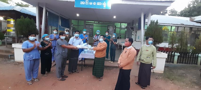 ထို့နောက် ဝန်ကြီးချုပ်ဦးဝင်းသိန်းနှင့်အဖွဲ့သည် အင်းမတိုက်နယ်ဆေးရုံသို့ရောက်ရှိ၍ ဆေးရုံတက်ရောက် ကုသနေသော လူနာများ အား ကြည့်ရှုအားပေးခဲ့ပြီး PPEဝတ်စုံ(၁၅)စုံ၊ Mask(၁၀)ဘူး၊ ရေမလိုလက်သန့် ဆေးရည်(၁၀)ဘူးတို့ကို ပေးအပ်လှူဒါန်းခဲ့ရာ အင်းမတိုက်နယ် ဆရာဝန် ဒေါက်တာကျော်မျိုးနိုင်က လက်ခံရယူခဲ့ကြောင်း သိရှိရသည်။